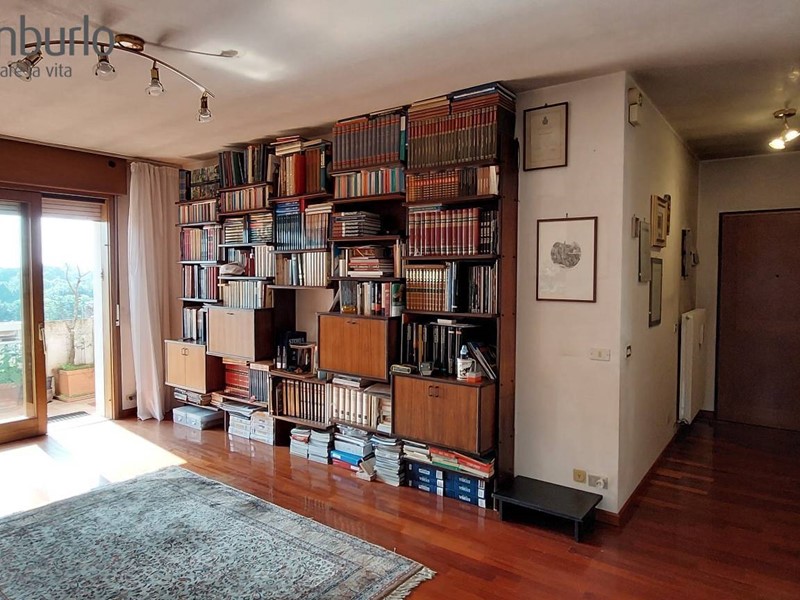 Trattasi di un appartamento luminoso e ben esposto posto al piano quinto e ultimo composto da: ingresso-soggiorno salotto, ampio terrazzo mq 74 con ripostiglio con caldaia e lavatrice, cucina abitabile, disimpegno notte, bagno con doccia e vasca, camera, ripostiglio-camera, disimpegno-guardaroba con armadi, camera matrimoniale, bagno con doccia. Completa l'unità immobiliare un ampio garage doppio mq 30 al piano interrato e un posto auto al piano terra mq 13. Lappartamento è dotato di riscaldamento autonomo, aria condizionato zona giorno 2023, videocitofono, tende esterne, porta blindata, ascensore. Si trova in una zona residenziale tranquilla e signorile, con parco pubblico, vicino a scuole, negozi, supermercati, farmacia, poste, banche, mezzi pubblici, centri sportivi e servizi in genere. Già fatto visione atti e sanatoria. Disponibili altri appartamenti nel nostro sito www.scanta.it e in Agenzia.