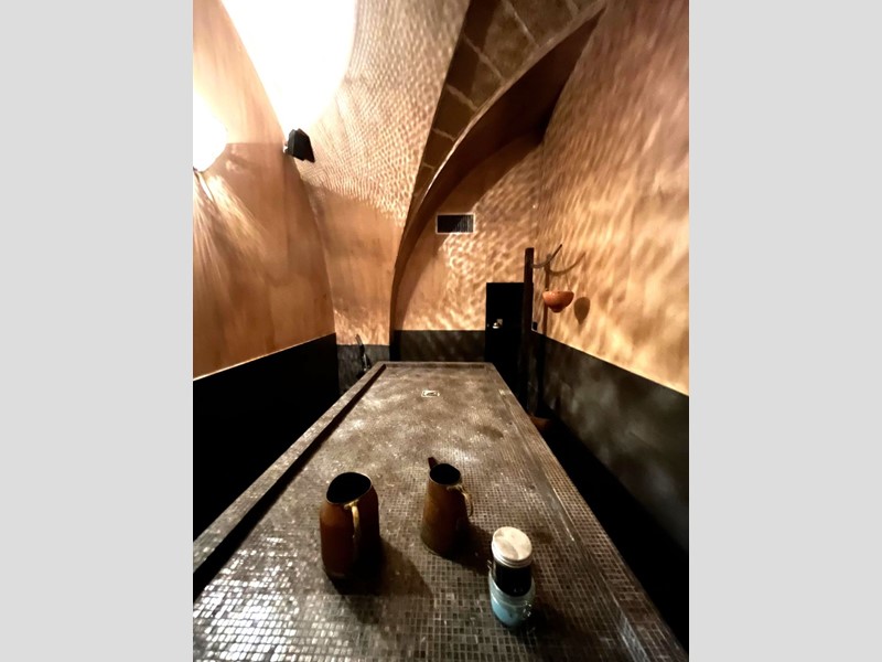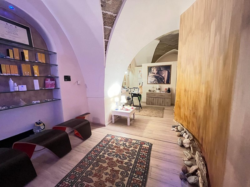 Si dispone con ampio ingresso, cinque cabine comode, ampio vano con volta a stella caratteristica e a faccia vista con favolosa vasca idromassaggio e due ulteriori cabine per i trattamenti.