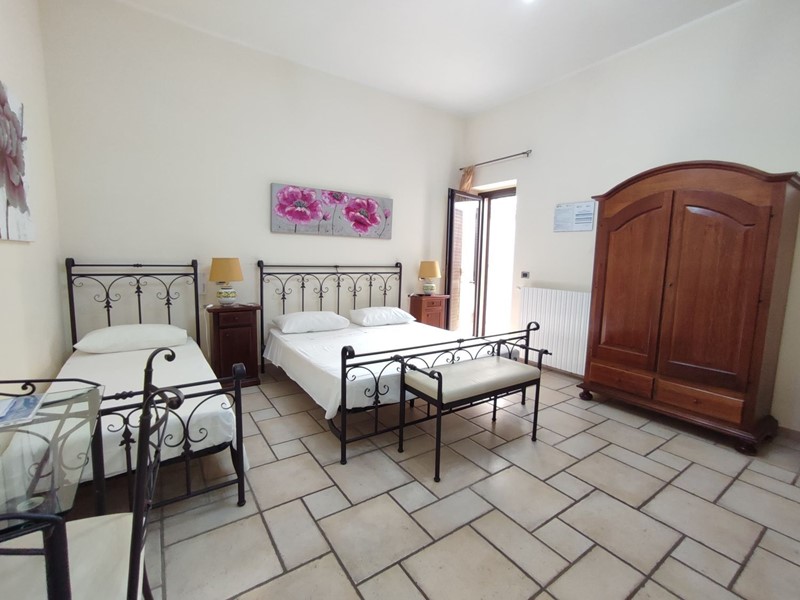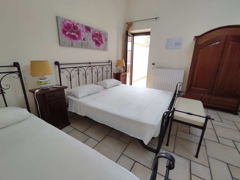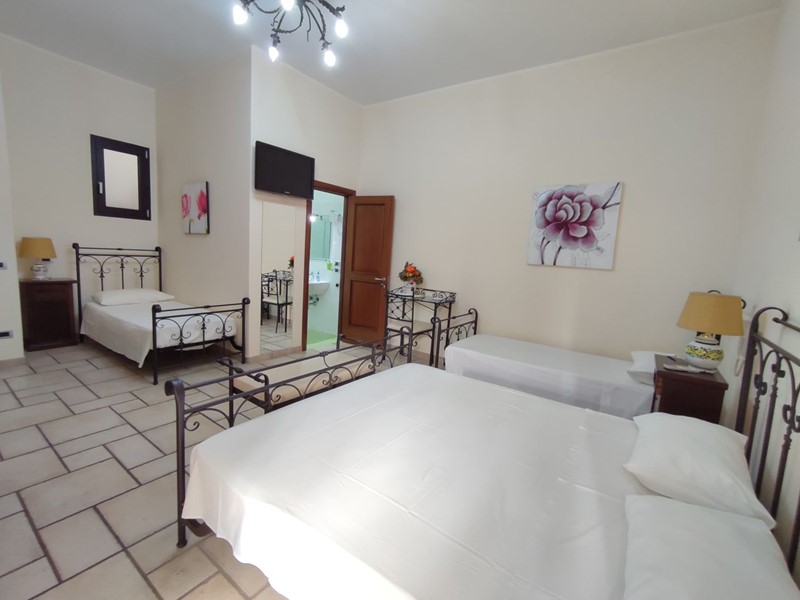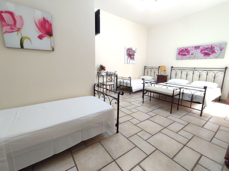L'immobile sviluppa una superficie interna di circa cento mq ed è attualmente composto da ingresso su ampio salone (reception), angolo cottura, dispensa, camera da letto matrimoniale, bagno completo, disimpegno, camera tripla con veranda privata e bagno en suite, camera quadrupla con veranda privata e bagno en suite; infine lavanderia.