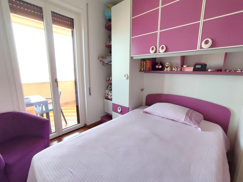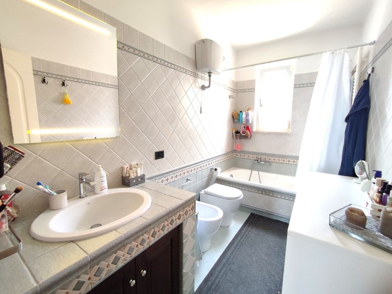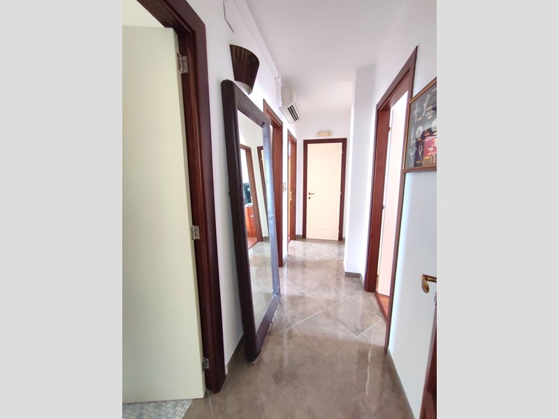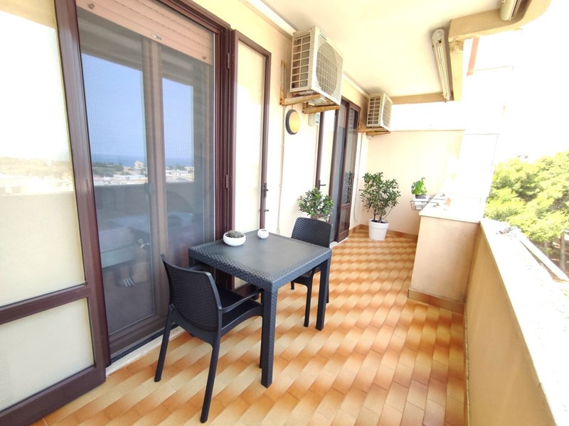 L'immobile sviluppa una superficie di circa cento mq e si compone di ingresso su luminoso salone, balcone abitabile vista mare, disimpegno, cucina abitabile con camino, camera matrimoniale balconata, due bagni, due camere da letto spaziose, ripostiglio, secondo balcone.