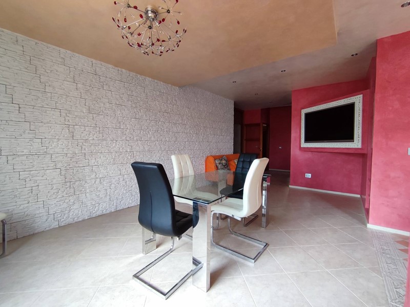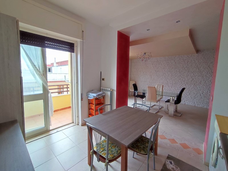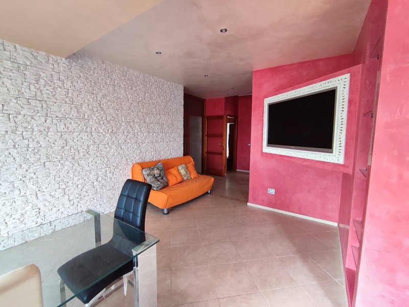 L'immobile, raggiungibile con ascensore, si sviluppa su una superficie di circa cento mq ed è composto da ingresso, luminoso salone comunicante con spaziosa cucina con balcone dal quale si può godere di uno scorcio mare, disimpegno, due ampie camere da letto, bagno con box doccia, secondo bagno molto ampio con vasca.