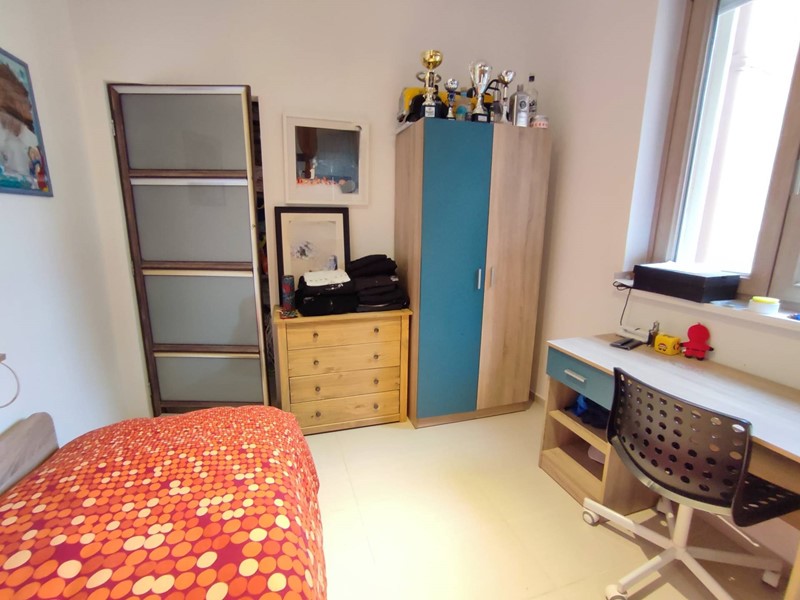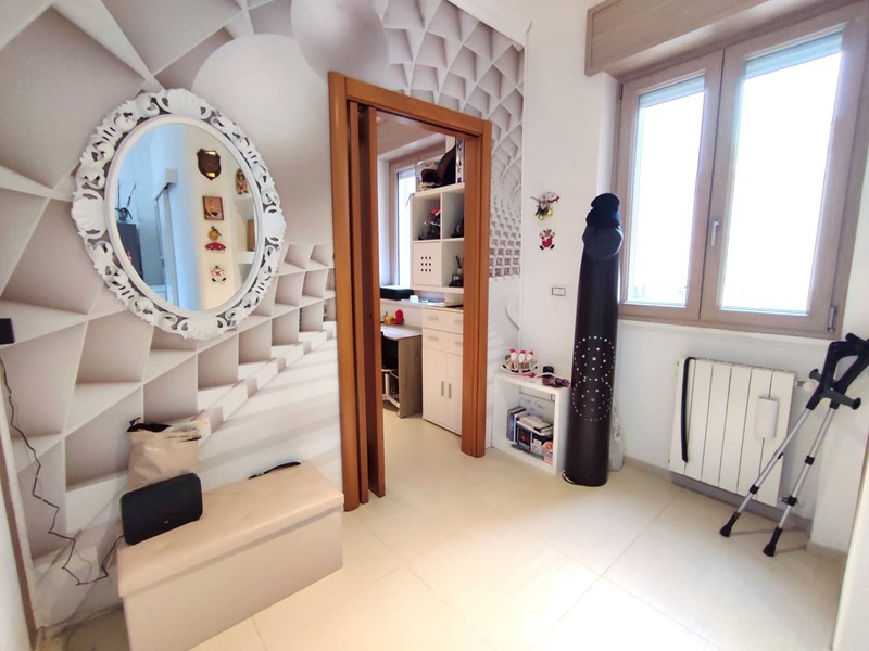 L'appartamento, che ha giovato di una ristrutturazione totale negli ultimi anni, si sviluppa su una superficie interna di circa 95 mq e si compone di ingresso spazioso con armadio a muro, open space luminosissimo di quasi 40 mq con cucina a vista e doppio affaccio sul balcone di circa 5 mq; studio con ripostiglio, piccolo disimpegno, due camere da letto ampie e luminose, bagno grande con doccia e secondo bagno dotato di doccia e zona lavanderia.