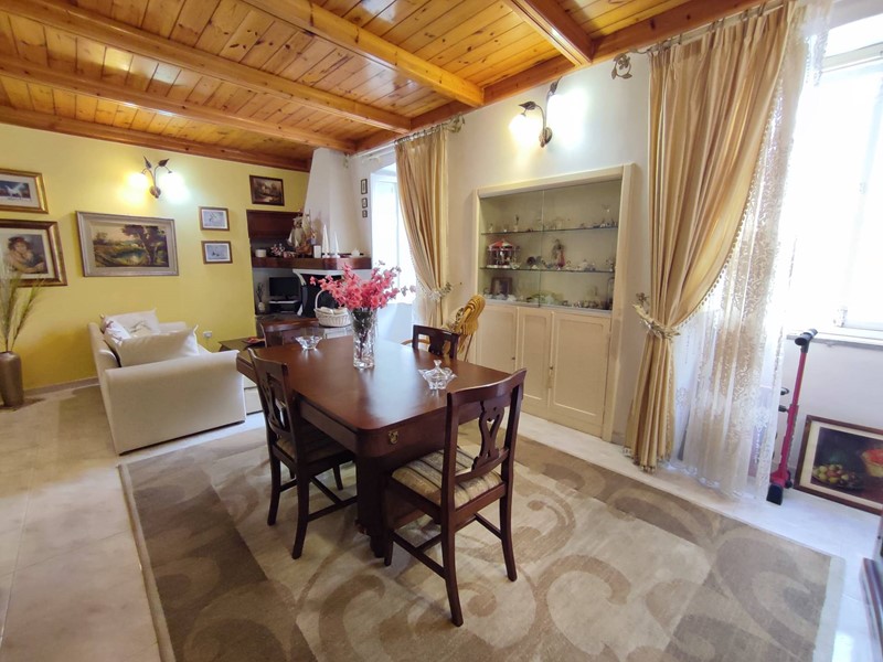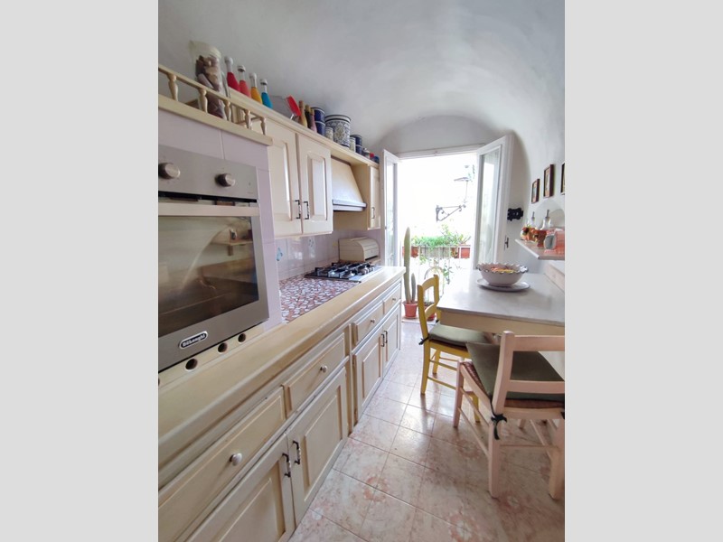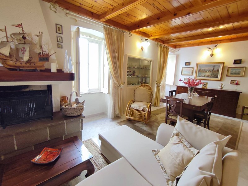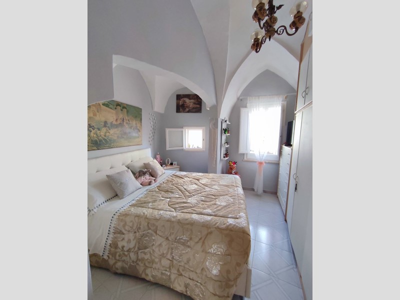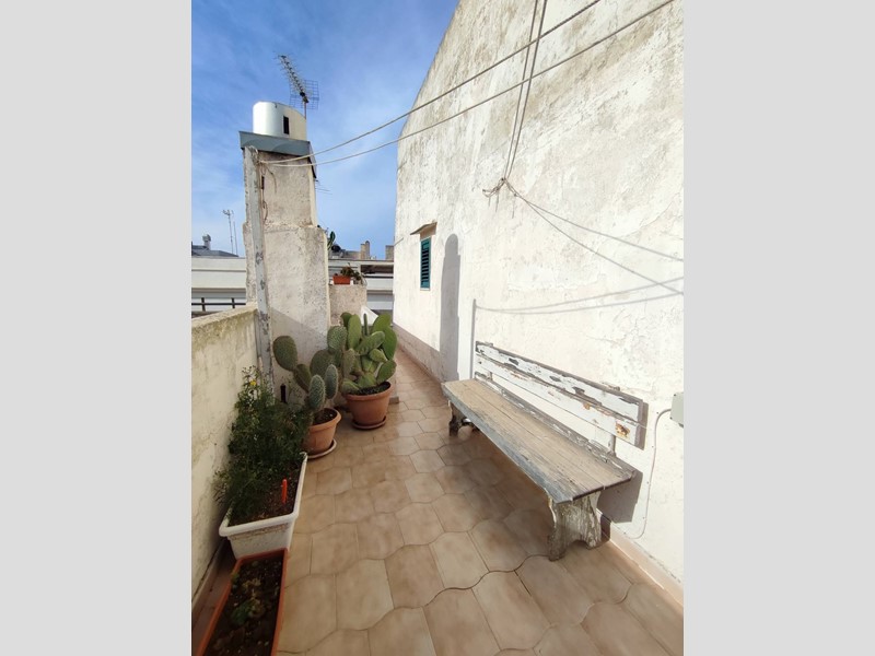 L'ingresso, autonomo e posto al pian terreno, è comodo e può ospitare anche biciclette o uno scooter; tramite comoda scala si raggiunge la zona giorno posta al primo piano e composta da cucina luminosa con volta a botte e camino, salone ampio e soleggiato con secondo camino, balconcino con affaccio sulle tipiche vie del centro storico, servizio igienico; secondo livello composto da due camere da letto con caratteristiche volte a stella, cabina armadio e secondo bagno spazioso; infine, sul livello superiore, raggiungibile con scala coperta, terrazzo di oltre 40 mq servita da acqua, barbecue, zona lavanderia e predisposizione per angolo cottura.