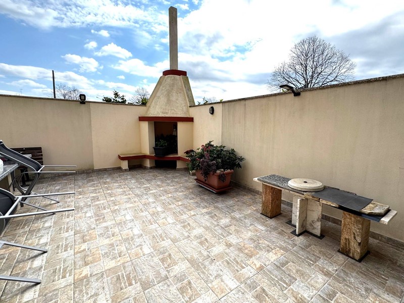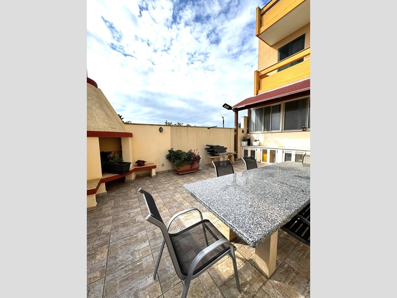 L'immobile si estende su una superficie di ben 120 mq ed ha accesso da veranda privata; si compone di ingresso spazioso, salone luminoso, cucina abitabile con dispensa e accesso diretto a una splendida veranda di ben 55 mq con zona barbecue; disimpegno, tre camere da letto di cui una con predisposizione per bagno en suite, bagno ampio e spazioso.