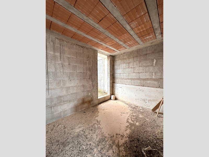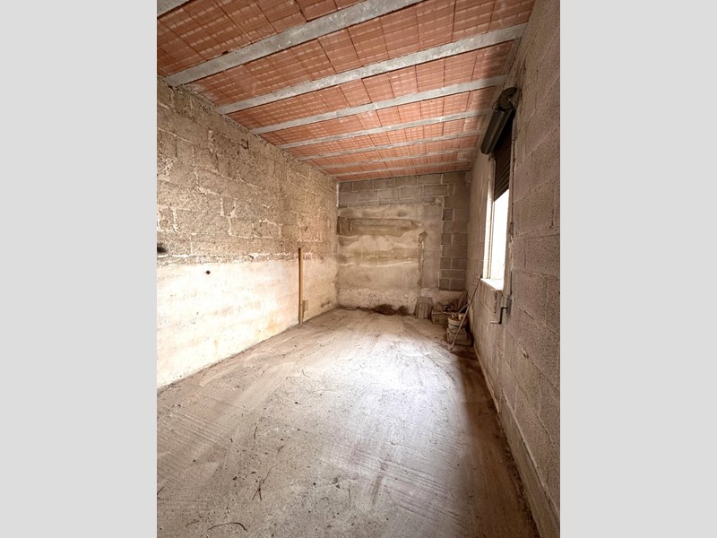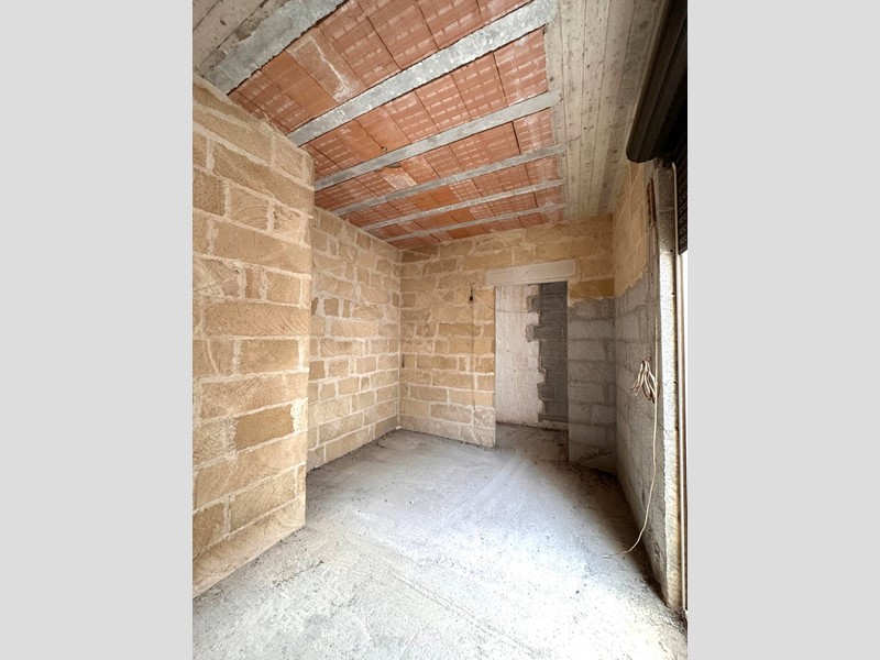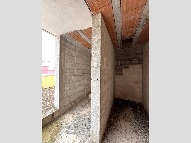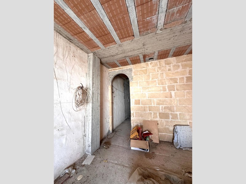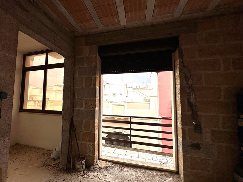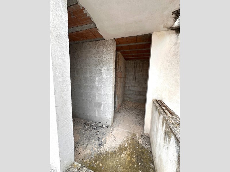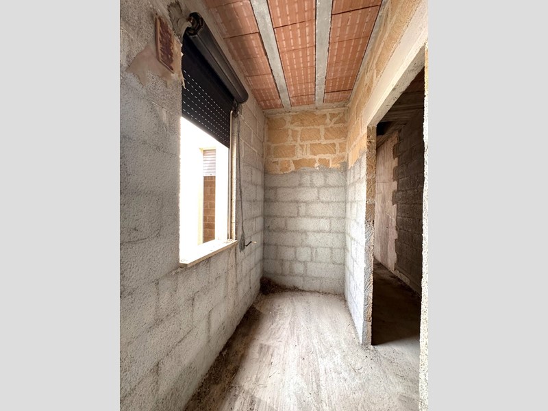 L'appartamento al primo piano, attualmente allo stato rustico, è ampio 70 mq circa ed è composto da ingresso-salotto, angolo cottura, disimpegno, due camere da letto e bagno spazioso; infine lastrico solare di proprietà.