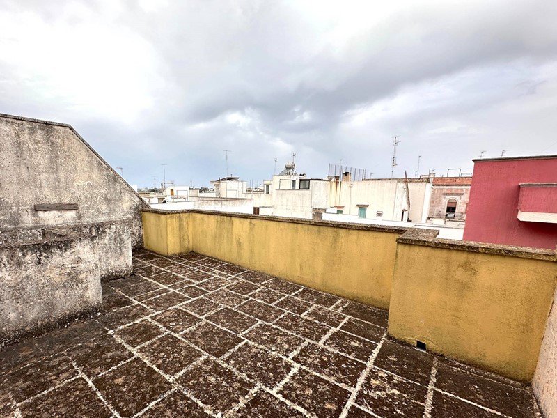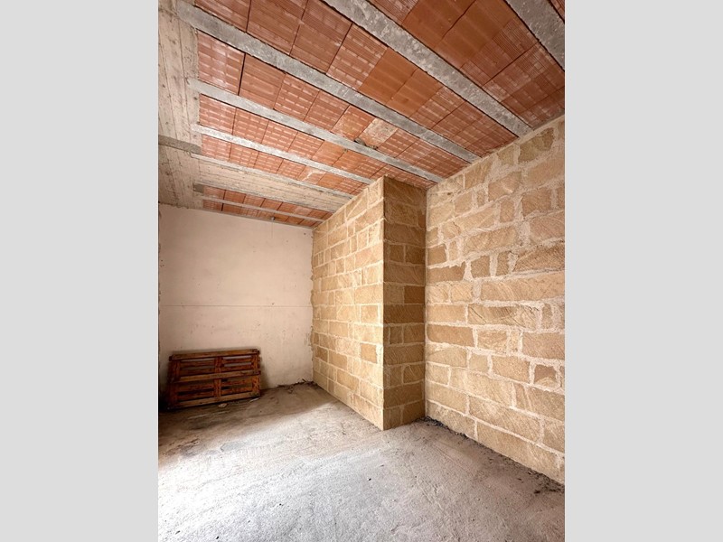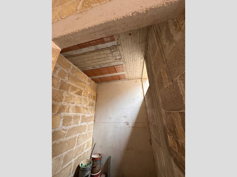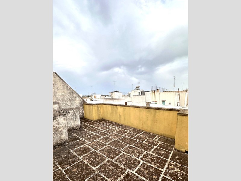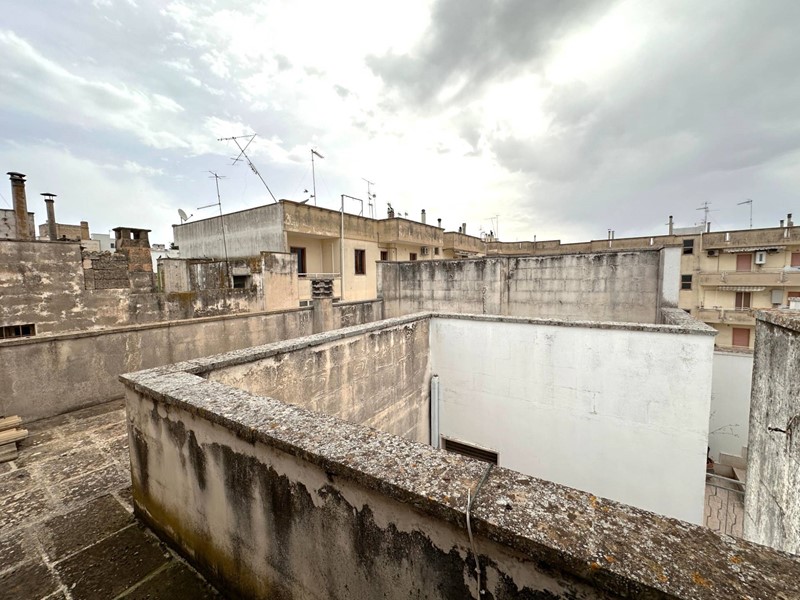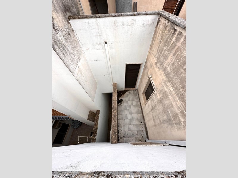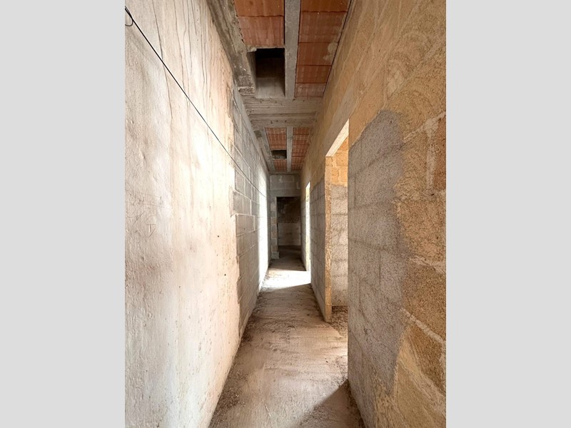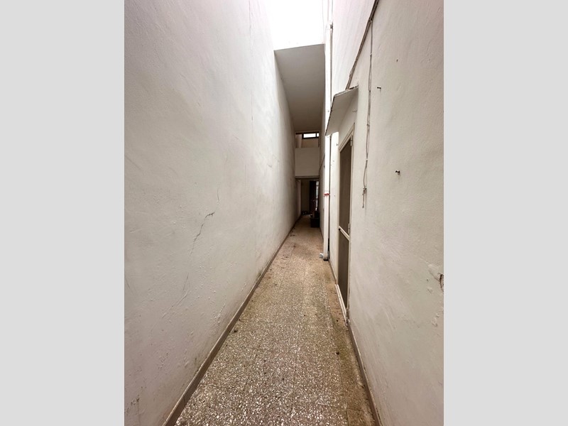L'appartamento al primo piano, attualmente allo stato rustico, è ampio 70 mq circa ed è composto da ingresso-salotto, angolo cottura, disimpegno, due camere da letto e bagno spazioso; infine lastrico solare di proprietà.