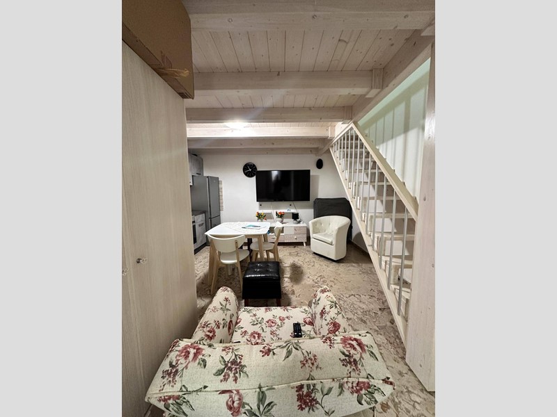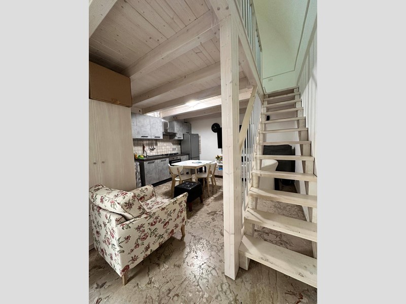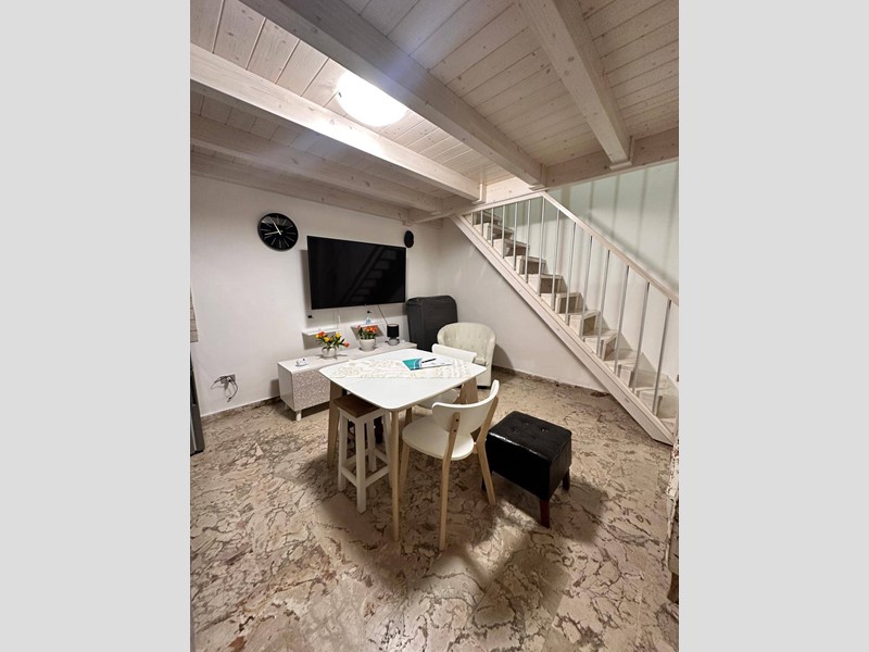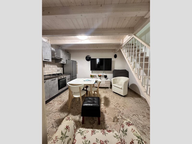 Il vano principale ospita soggiorno con zona cottura e comodo bagno con box doccia; il soppalco, realizzato con struttura in legno, ospita la camera da letto ed ha altezza comoda di 2,55 m. L'impianto elettrico e quello idrico sono nuovi; è presente inoltre aria condizionata.