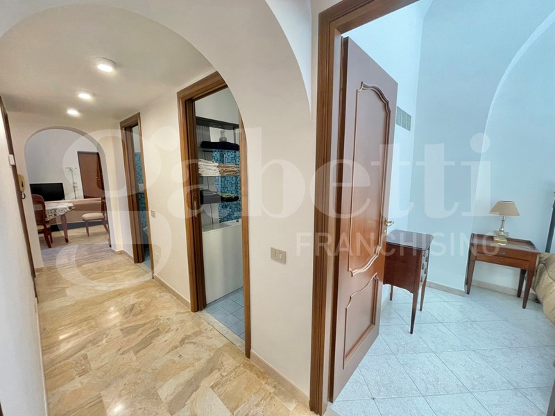 La zona notte, riservata e funzionalmente divisa dalla zona giorno, si compone di due ampie camere che offrono spazio per comode armadiature.