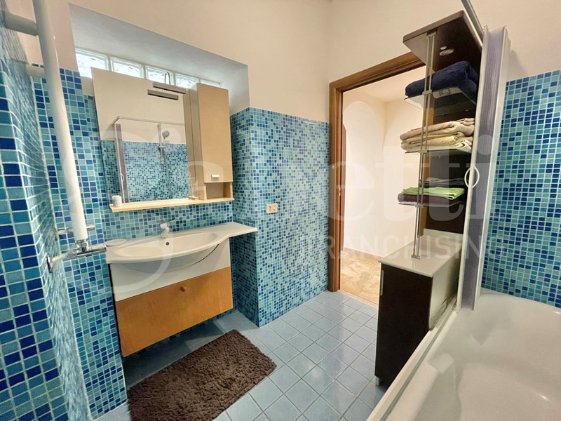 Sono inoltre presenti due bagni, dotati rispettivamente di un comodo box doccia e di una vasca da bagno.