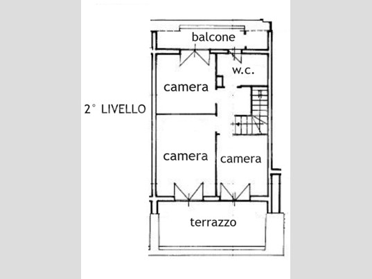 Attraverso la scala interna si raggiunge il piano superiore, così suddiviso: