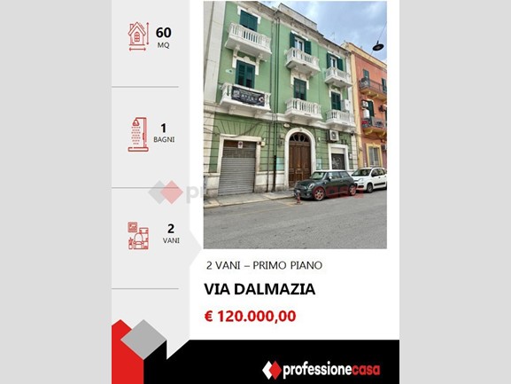 Professionecasa Ag. Bari Madonnella propone in vendita in Via Dalmazia n. 123, un bivani posto al piano primo di un palazzotto d'epoca ristrutturato .