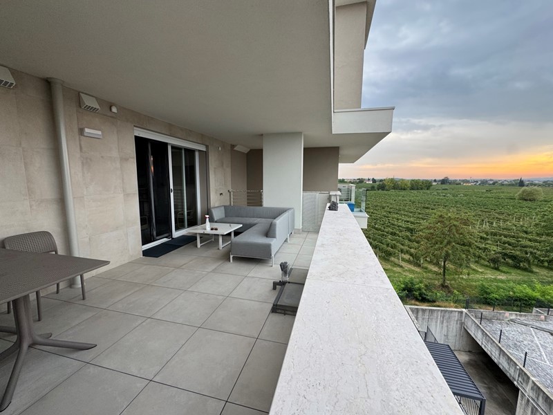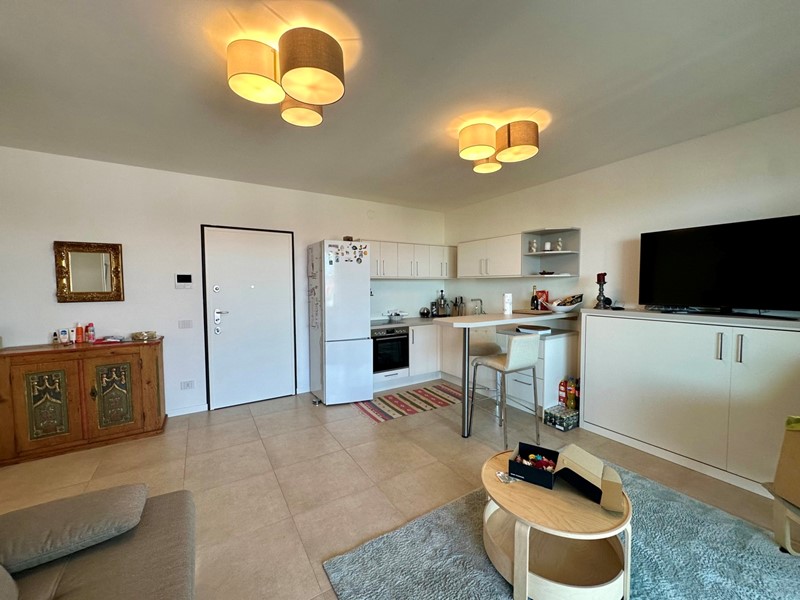 Soluzione composta di: ingresso, soggiorno con zona cottura, disimpegno, camera matrimoniale, bagno, ampio terrazzo panoramico coperto, box auto.