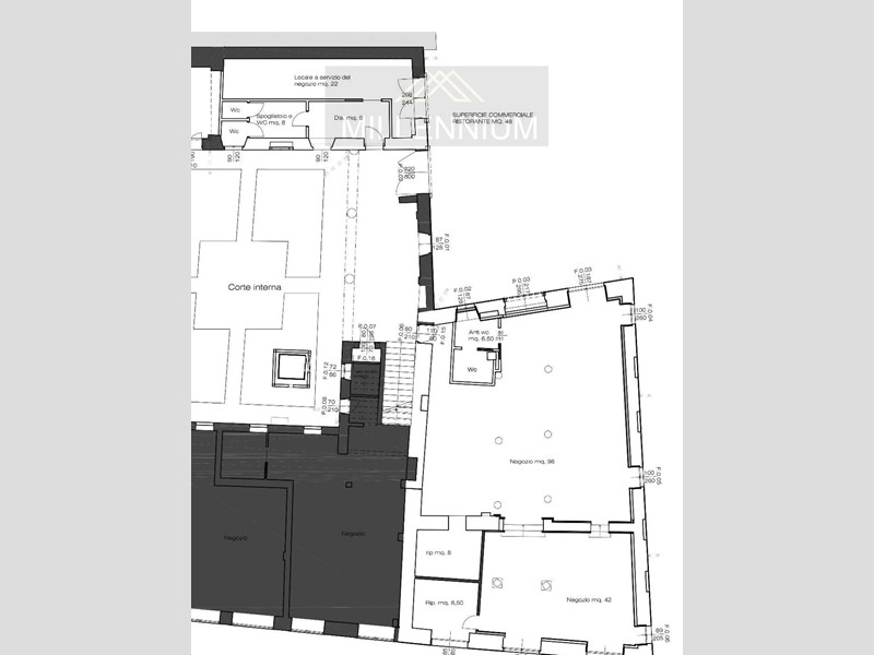 Superficie interna di circa 180 mqoltre un deposito di circa 40 mq (con un bagno all interno). Le finiture e la disposizione dei locali, l'ampia cucina, rendono questa proprietà perfetta per una Sala da te'- Pasticceria oppure attività Ristorativa pregiata. Impiantistica nuova, ampie vetrate sul corso principale.