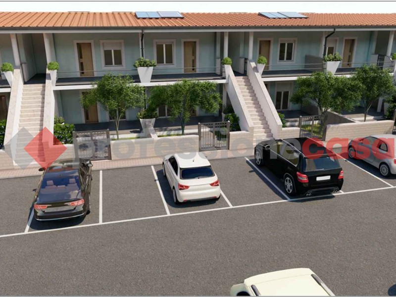 Tor San Lorenzo Lido - consorzio La Sbarra - appartamento in villa al piano primo: soggiorno con a/k, due camere, disimpegno, bagno con doccia, due balconi e posto auto scoperto interno al consorzio. Pannello solare produzione acqua calda da 150 LT e predisposizione pannelli fotovoltaici. Servizio di guardiania h24 tutto l'anno. Gli appartamenti si trovano a 200 mt dal mare e la consegna è prevista a giugno 2026.