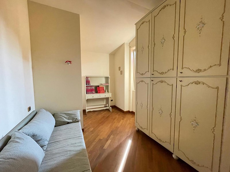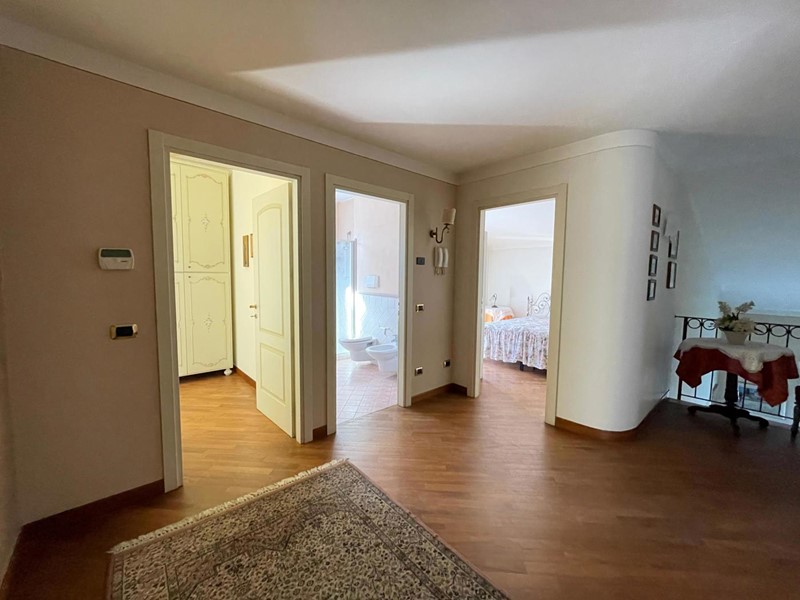 Al piano primo l'ampio disimpegno consente l'accesso alle tre camere da letto: una matrimoniale con balcone e bagno padronale completo di doccia e vasca idromassaggio, una camera matrimoniale con balcone ed una terza camera singola di buona metratura. A completare il piano, bagno di servizio con doccia.
