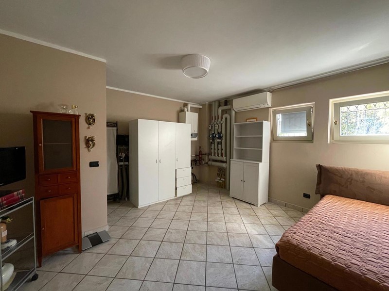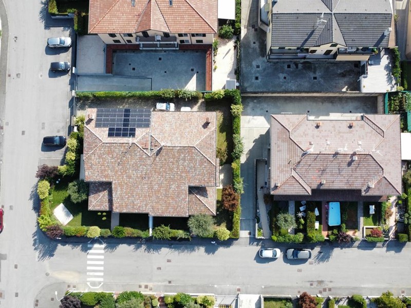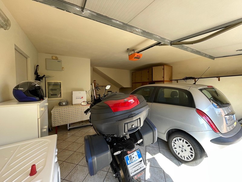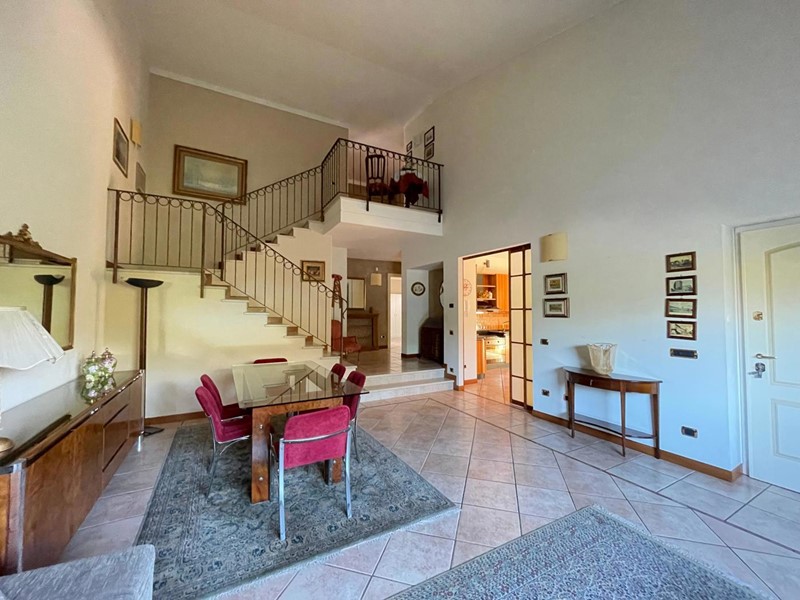 La soluzione di ca. 200mq si sviluppa su due livelli fuori terra ed è così composta: tramite porticato d'ingresso ideale per momenti di relax open air, si accede al soggiorno caratterizzato da ampie metrature ed importanti altezze. La porta scorrevole divide la cucina abitabile con apertura sul giardino ideale per pranzi e cene in quanto riparato da parasole motorizzato. A completare il piano terra, bagno di servizio al piano e locale lavanderia con accesso diretto tramite porta rei all'autorimessa di ca. 28mq.