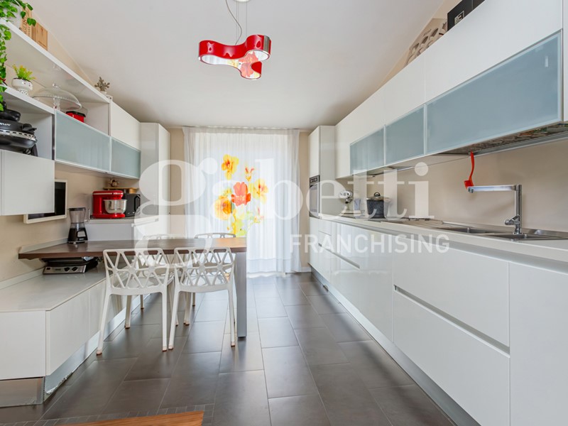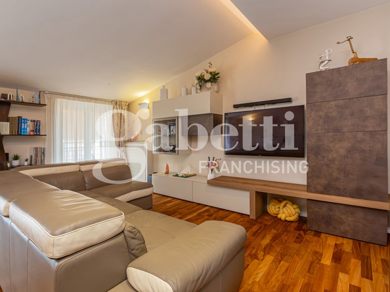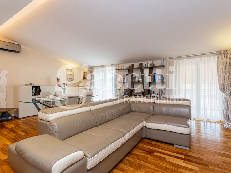 L'appartamento, che verrà consegnato parzialmente arredato, è composto da: ingresso in salone doppio, una camera da letto matrimoniale con cabina armadio e bagno in camera, ulteriore camera da letto, bagno padronale, cucina abitabile, e due ampie balconate che permettono di godere di una vista panoramica sulla zona circostante.
