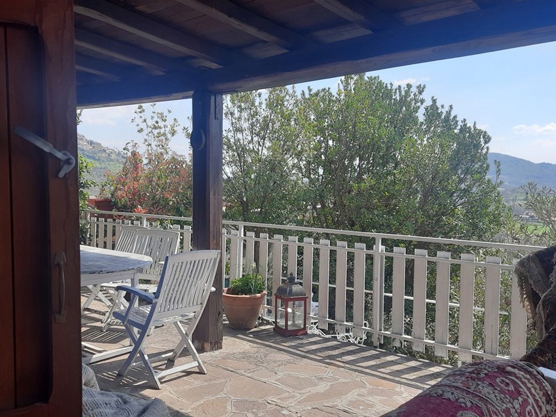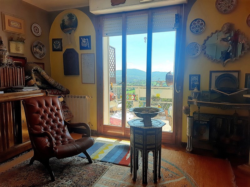 il Piano d'ingresso è anticipato dalla corte privata pavimentata ricca di aiule ed ospita un importante soggiorno affacciato sul panorama delle colline circostanti con terrazzo, cucina principale -ad oggi adibita a studio personale, camera da letto matrimoniale e bagno, ristrutturato e completo di doccia e finestra-