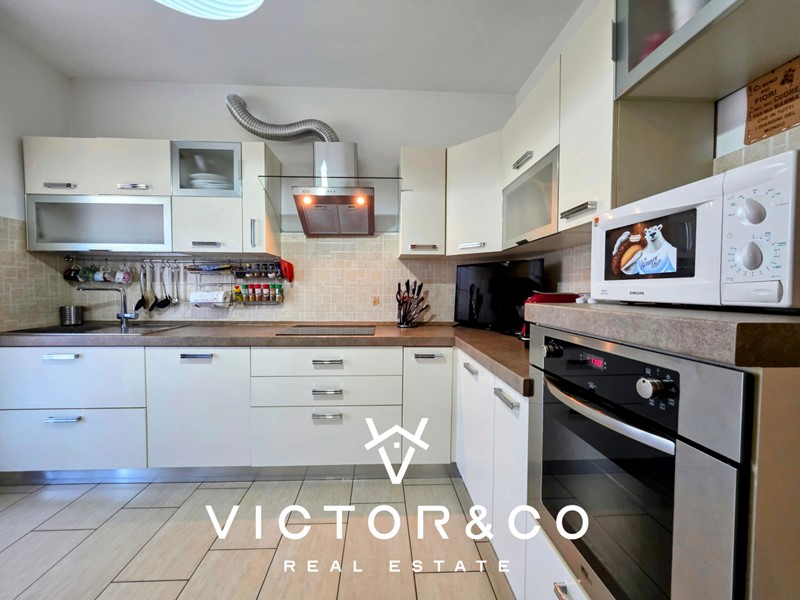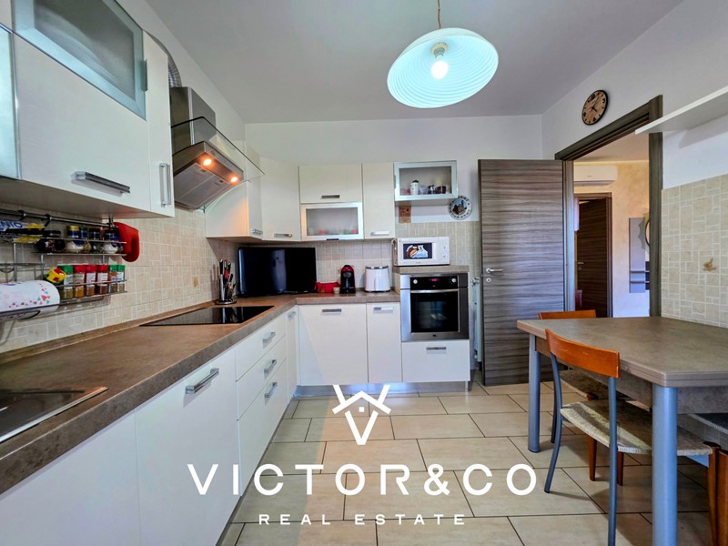 L’ingresso si apre su un luminoso soggiorno, ideale per i momenti di relax, collegato alla cucina abitabile, perfetta per chi ama vivere la zona giorno in piena convivialità.