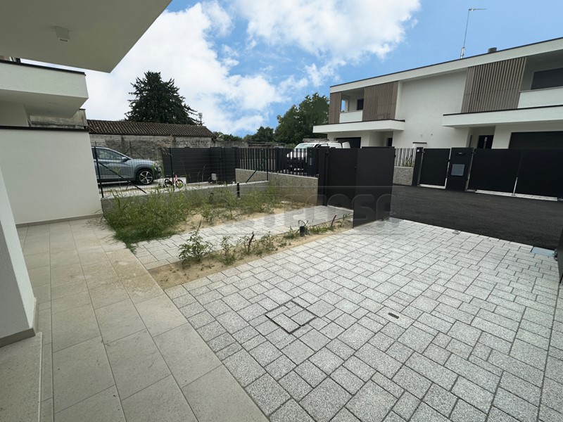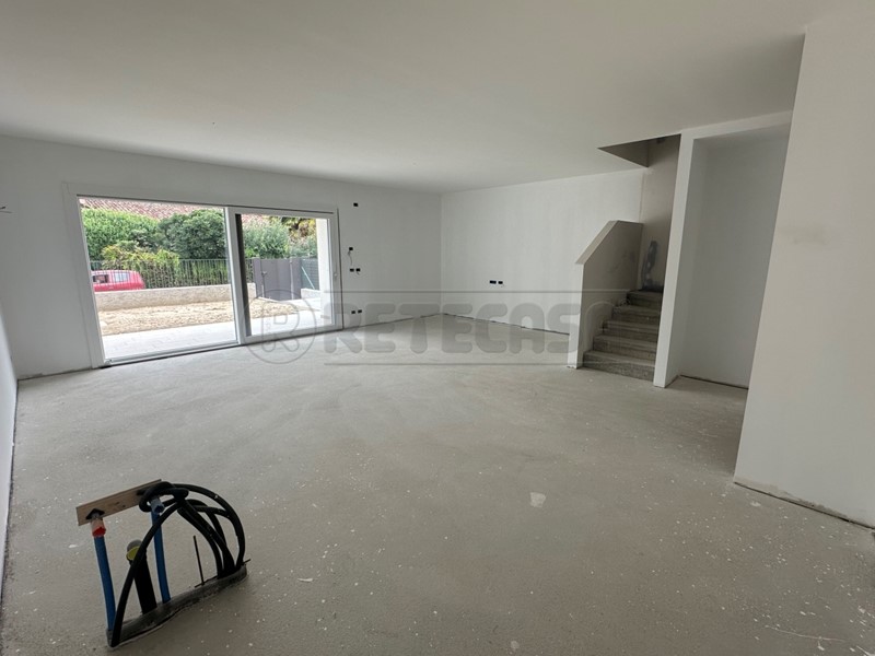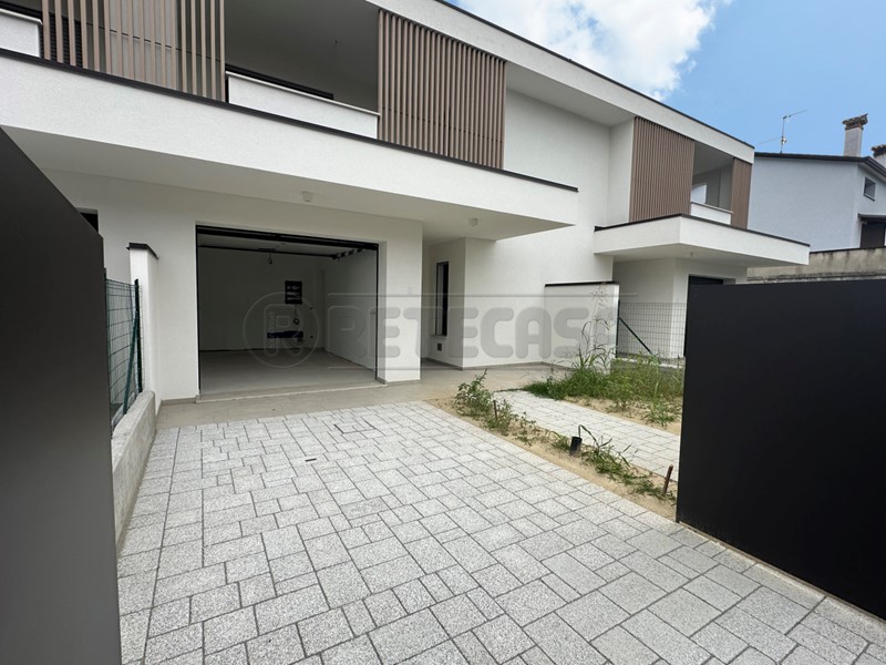 FIUMICELLO-VILLA VICENTINA: Sogni una casa nuova, moderna sotto l'aspetto energetico, ma anche progettuale e la vuoi anche subito? Abbiamo quello che fa per te!! A Fiumicello, proprio a due passi dalla chiesa di San Valentino e dalla Piazza del Municipio, ti proponiamo una villa a schiera ampia e luminosa, con una superficie di circa 185 mq commerciali distribuiti su due livelli, progettata con la massima cura per garantire un ambiente di vita sereno e confortevole. L'ingresso alla villetta, avviene tramite strada privata. La vettura può essere parcheggiata all'interno dell'autorimessa con basculante elettrico oppure lasciata esternamente, all'interno della proprietà. L'accesso pedonale conduce al grande soggiorno di forma regolare, con cucina progettata con isola centrale e uscita sul secondo giardino che offre la privacy necessaria. Al piano terra si trova anche il primo bagno completo e finestrato e un comodo ripostiglio. Il primo piano è progettato per garantire spazi comodi e ben organizzati, infatti non troverai da nessuna parte una casa nuova con tre camere matrimoniali e ben due ripostigli! Dalla matrimoniale si accede alla prima terrazza, leggermente più piccola rispetto a quella a servizio delle altre due camere. Il bagno è ambio e ben organizzato con una doccia spaziosa e moderna. Esternamente la proprietà è completamente recintata, con impianto di irrigazione automatico per mantenere rigoglioso il verde dei giardini. La pompa di calore e l'impiantistica di supporto per il fotovoltaico sono posizionati esternamente, in un vano dedicato, all'interno del quale si trovano anche gli attacchi per la lavatrice e l'asciugatrice. A lato del basculante del garage si trova anche, per chi è già dotato o sta pensando all'acquisto, la predisposizione per la colonnina di ricarica elettrica dell'autovettura. Classe energetica altissima, garantita dal sistema costruttivo Cllimablock della Pontarolo Engineering, con isolamento interno di 6cm, pareti dello spessore di 16cm, ulteriore isolamento esterno di 9cm e sottostante basamento dotato di intercapedine aerata. Il riscaldamento dell'immobile avviene tramite impianto radiante a pavimento con pompa di calore, affiancata ad un impianto fotovoltaico da 6 kW. La costruzione si contraddistingue anche per l'utilizzo di materiali pregiati e di finiture di alta qualità, insomma hai tutto quello di cui hai bisogno! Non aspettare oltre, chiamaci subito per fissare il tuo appuntamento, vivi il sogno della casa perfetta e scopri come il comfort e la tranquillità si fondono in un’esperienza unica! La descrizione dell’immobile, la planimetria riqualificata e le metrature riportate non costituiscono elementi contrattuali ma sono solo indicativi.