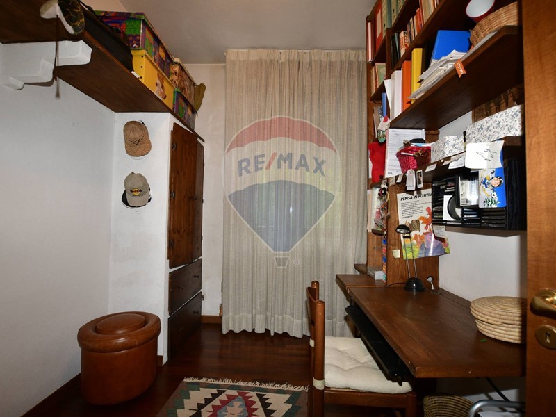 L'immobile è composto da ingresso, ampio soggiorno-pranzo con caminetto e accesso alla terrazza, cucina abitabile con terrazza, bagno con vasca, studio, camera singola, bagno con doccia, camera matrimoniale con terrazza.