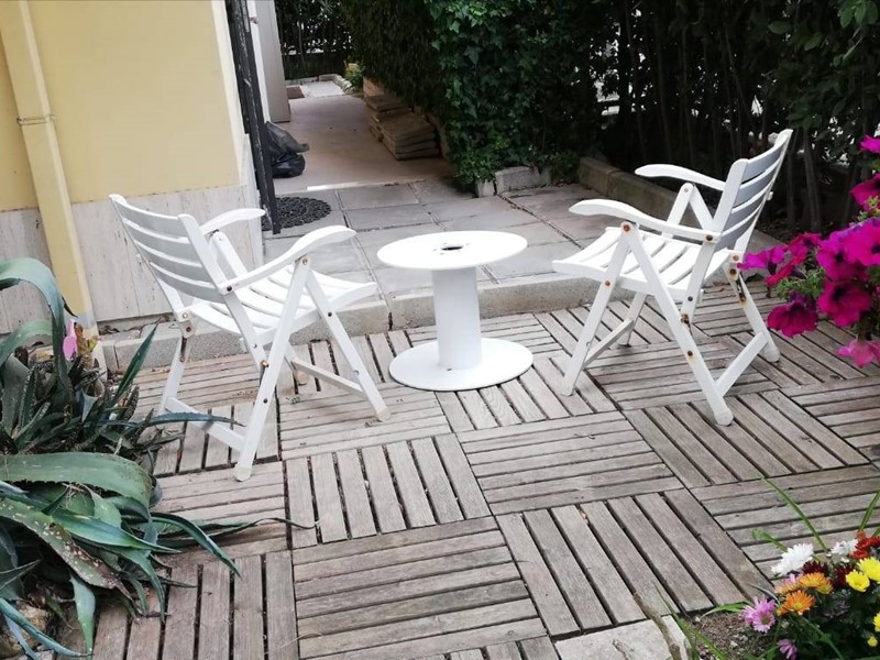 L'ingresso si apre su un ampio soggiorno, luminoso e ben distribuito, che conduce al cucinotto abitabile, dal quale si accede al giardino in parte pavimentato, dove poter pranzare all'aperto e prendersi cura di piante bellissime per chi ha il pollice verde!