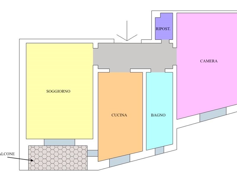 La casa è in buone condizioni, dotata di porta blindata e infissi in alluminio con doppi vetri; gli spazi si prestano a diverse personalizzazioni, per adattarli alle proprie esigenze.
