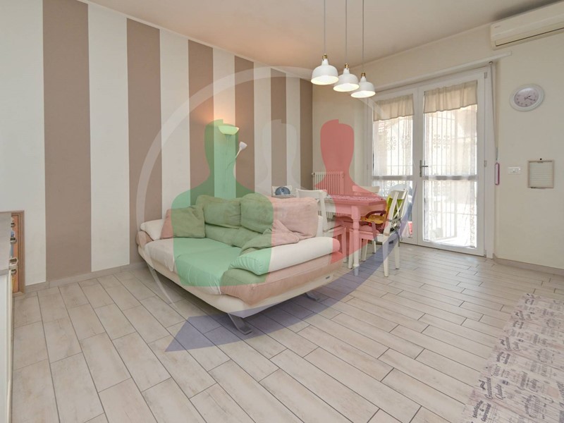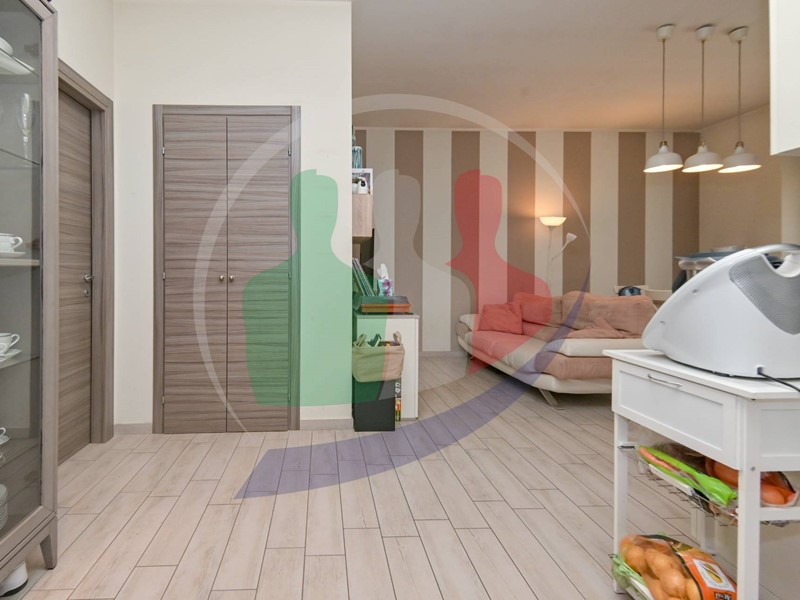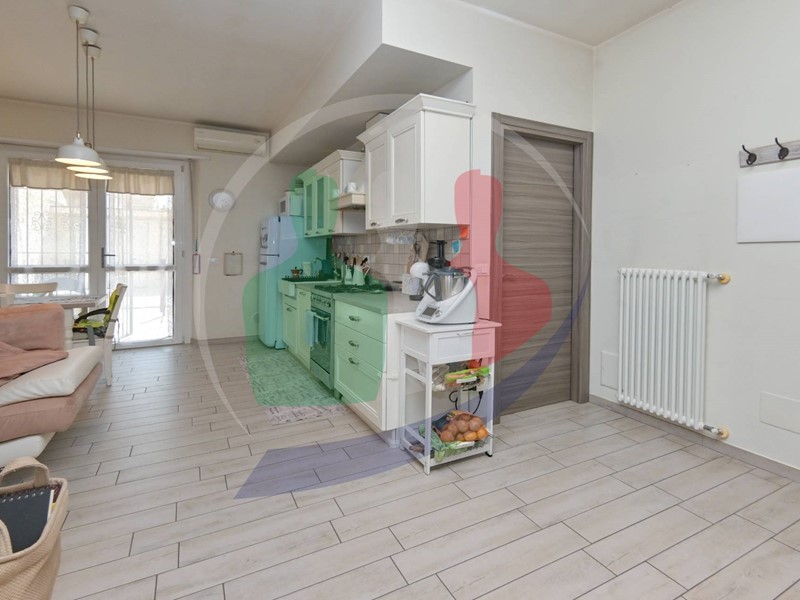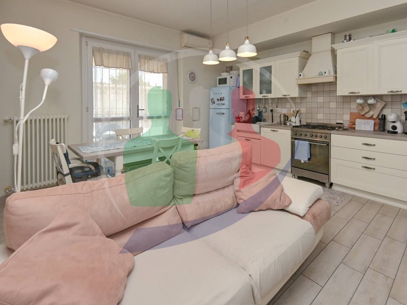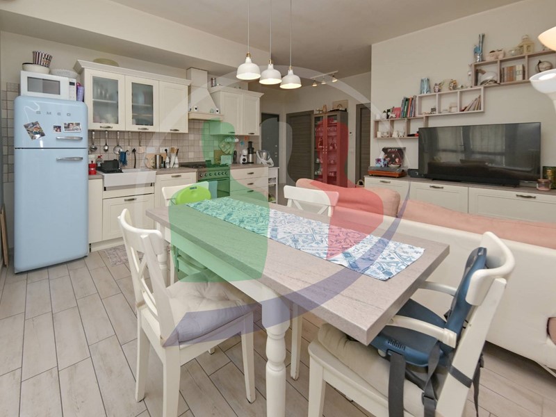 Ingresso living su soggiorno con cucina a vista lineare; dal soggiorno si accede direttamente al terrazzo di ampia metratura, ideale per trascorrere momenti di relax o organizzare pranzi e cene con amici e parenti.
