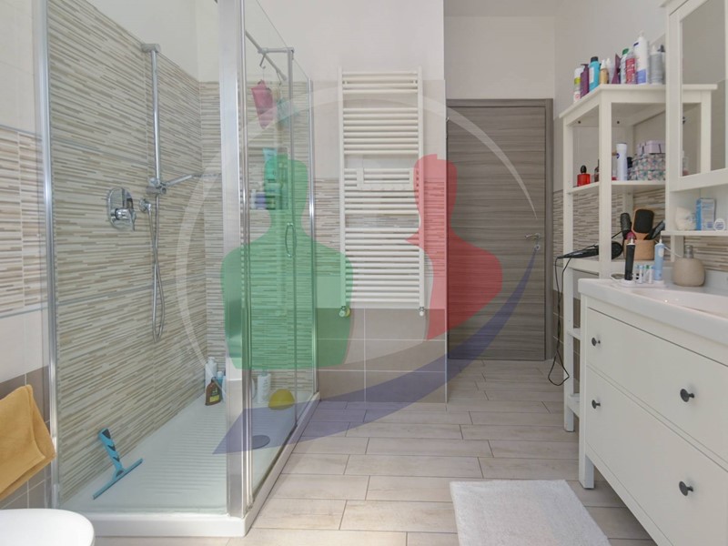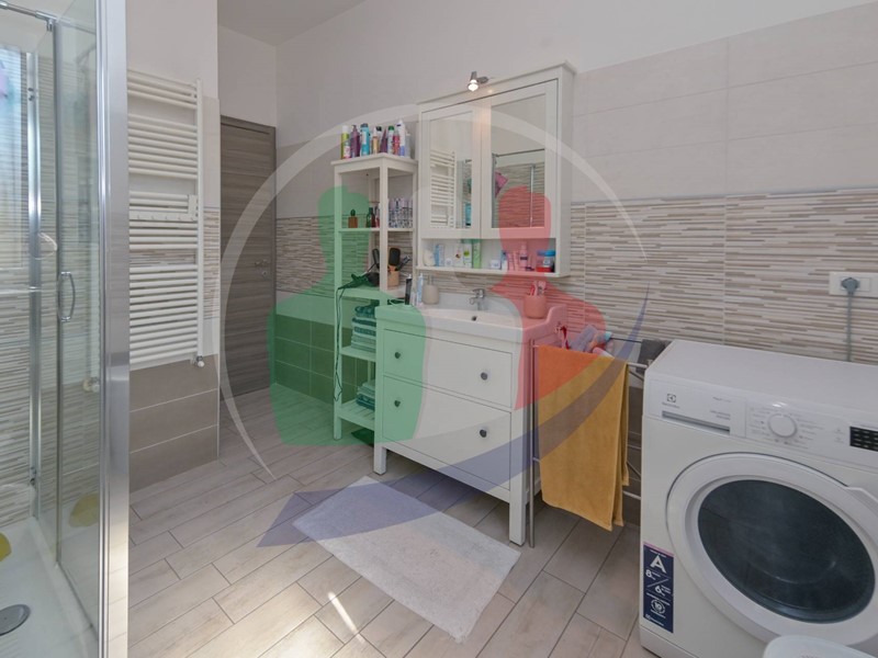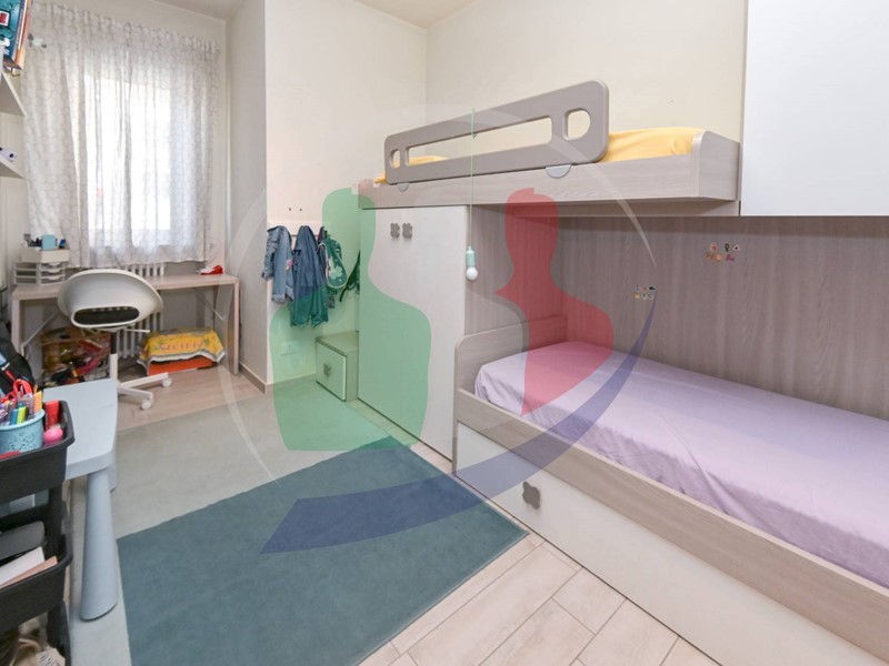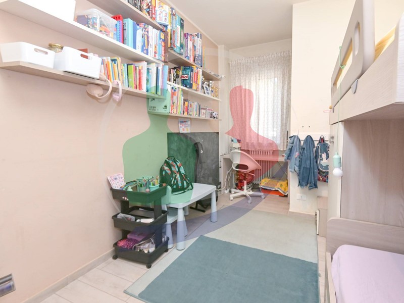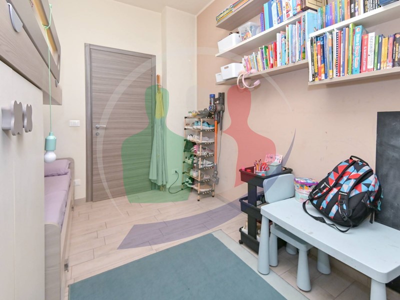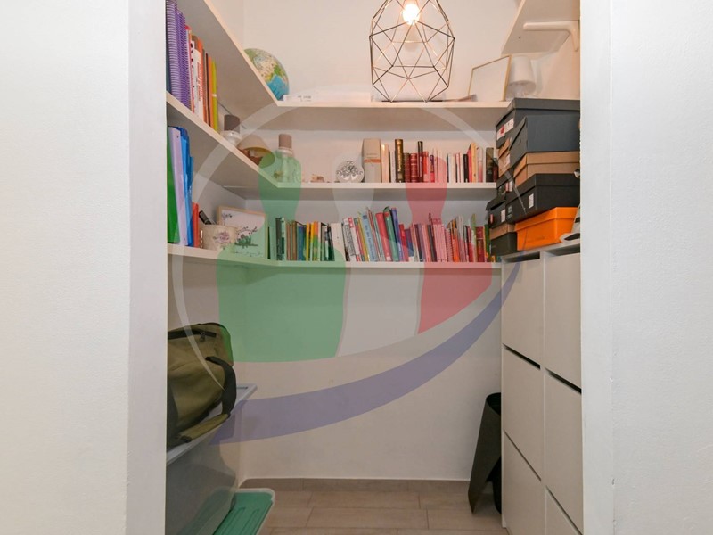 Lappartamento dispone inoltre di una camera singola, una camera matrimoniale con cabina armadio, un pratico ripostiglio e un bagno finestrato di generosa metratura, completo di box doccia.
