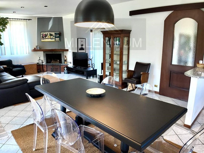 Gli interni, luminosi e raffinati, sono impreziositi da ampie vetrate che fondono casa e natura in un dialogo costante. Finiture classiche, tonalità neutre e linee moderne donano all'ambiente un'eleganza senza tempo.