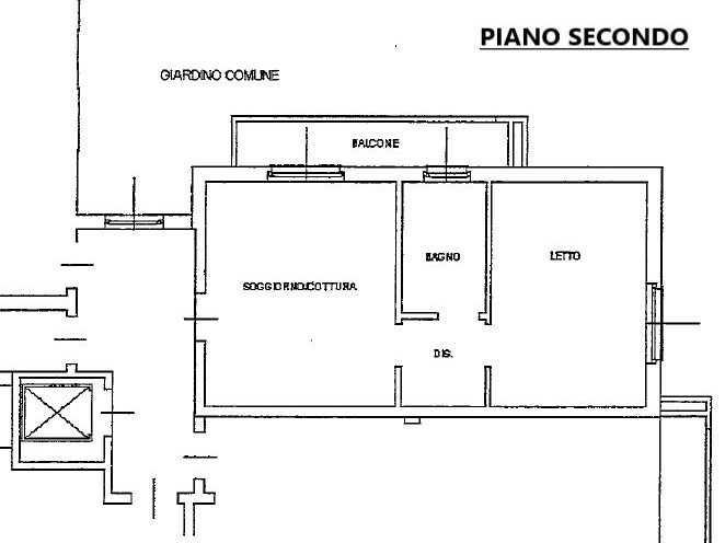 L'appartamento è composto da soggiorno con angolo cottura e balcone, disimpegno notte, bagno e camera matrimoniale.