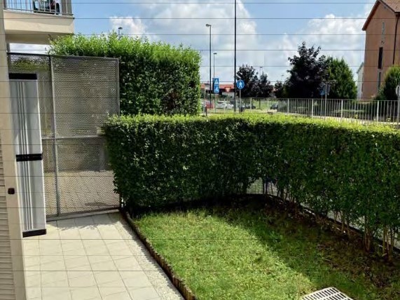 Con accesso dalla scala “C”, al piano terreno (1° f.t.), alloggio con annessa corte in uso esclusivo antistante e frontistante, composto di ingresso su soggiorno con angolo cottura, disimpegno, ripostiglio, camera e bagno; - al piano interrato, cantina.