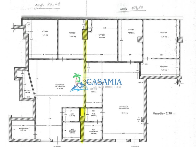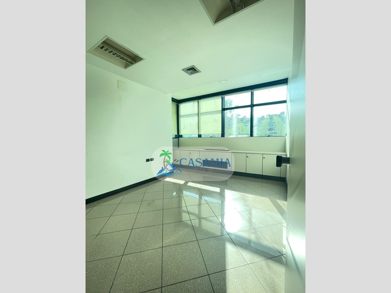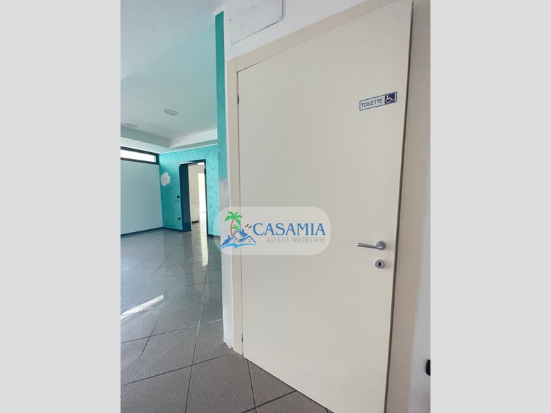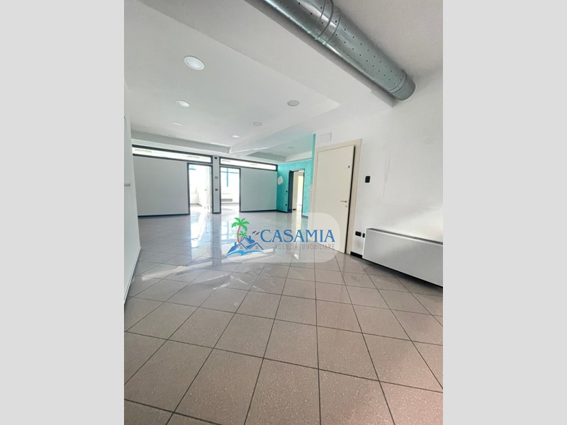 In elegante complesso commerciale e direzionale visibile sulla statale 16, ampio e luminoso ufficio posto al piano 1° servito da ascensore. L'immobile ha una superficie coperta di circa 190 mq, è dotato di doppio ingresso pertanto divisibile in due uffici distinti, gode di esposizione a ovest, è dotato di ampie vetrine visibili su strada e si compone di due ampie stanze all'ingresso ad uso reception, 5 uffici, 2 bagni con anti bagno a norma per handicap, un magazzino e tre archivi.