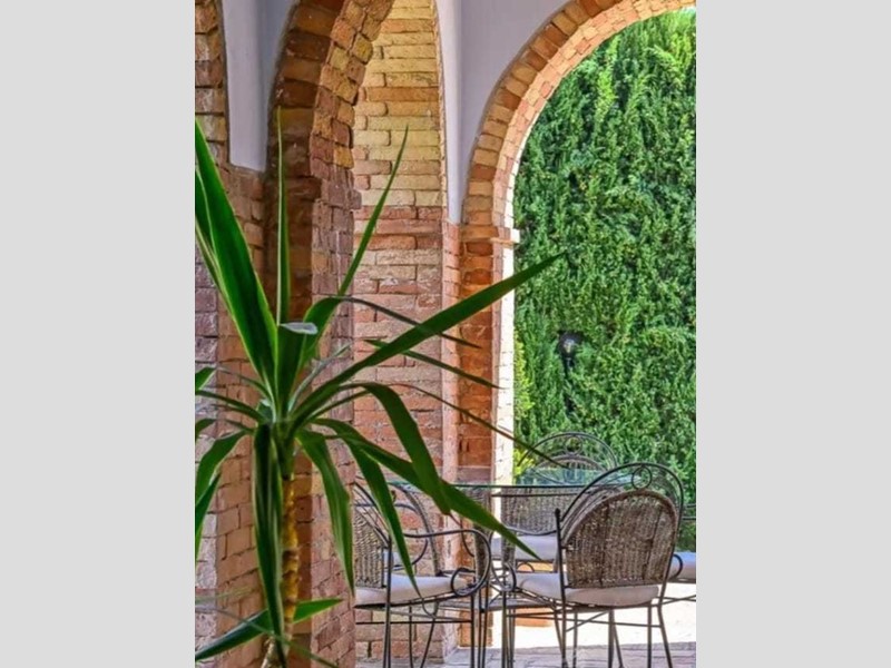 Nel giardino principale, sul lato Nord-Est, si trova un terrazzamento in laterizi d’epoca di 90 mq e un’antica torre di avvistamento molto scenografica, sviluppata su tre piani per complessivi 88 mq.