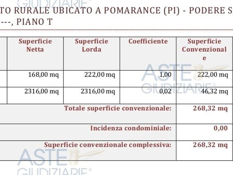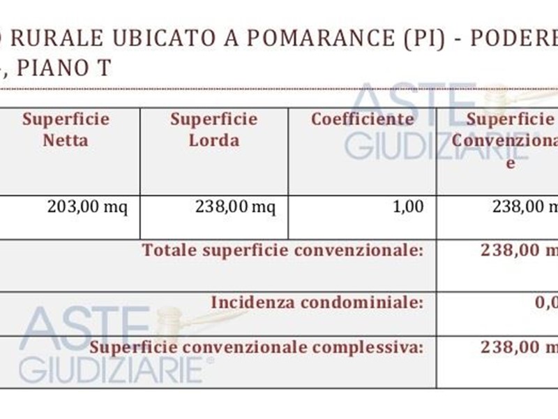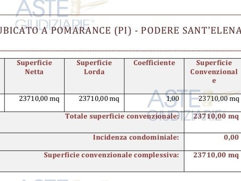 Pomarance, località I Pianacci, podere San'Elena, ampia proprietà estesa ha. 21.44.80 costituita da fabbricato principale e secondario, accessori e terreni\n\nPossibilit and #224; MUTUO al 100% Opportunit and #224; Unica:L'immobile attualmente in vendita dal Tribunale rappresenta un'occasione imperdibile. Partecipa e scopri la possibilit and #224; di acquisire la propriet and #224; prima dell'asta, garantendoti un vantaggio competitivo nel mercato immobiliare.Servizio Esclusivo di Assistenza:Il nostro annuncio and #232; incentrato sulla vendita del servizio di assistenza personalizzata, progettato per rendere il tuo acquisto sicuro e conveniente. Il nostro team esperto and #232; pronto ad accompagnarti in ogni fase, garantendoti una transazione senza problemi.Vieni a trovarci nei nostri uffici per una consulenza senza impegno. Ti forniamo le informazioni necessarie per prendere decisioni importanti e sfruttare al massimo queste straordinarie opportunit and #224;.Realizza il tuo sogno immobiliare con noi!