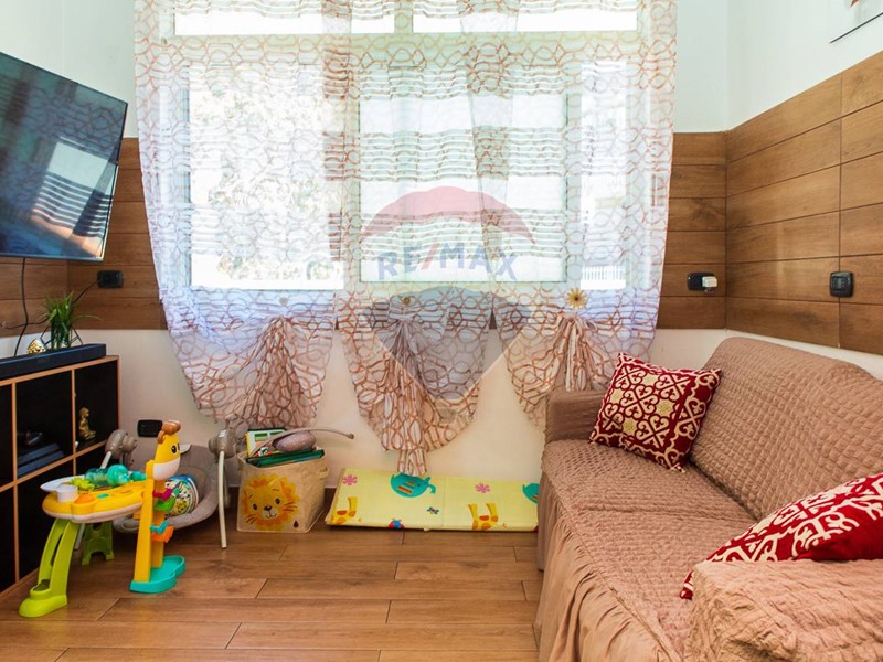 Limmobile si apre su un ingresso con disimpegno che conduce alla cucina abitabile, arricchita da una veranda regolarizzata, oggi adibita a confortevole zona living con divano e TV. Da qui si accede alla spaziosa terrazza esterna, perfetta per pranzi e cene allaperto, con un piccolo angolo di verde che dona ulteriore vivibilità agli spazi.