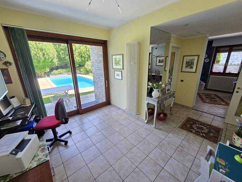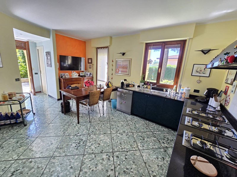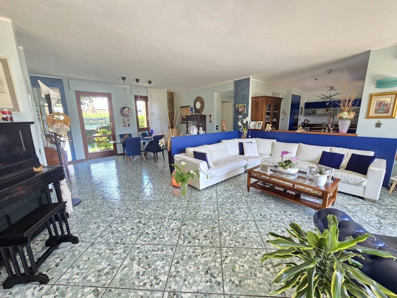 - al piano terra, AMPIO SALONE MOLTO LUMINOSO grazie alla presenza di stupende vetrate e più finestre, ben DUE CUCINE ABITABILI (una di queste potrebbe essere adibita ad altro ambiente separato o per ampliare ancor di più la zona giorno), DOPPI SERVIZI e una comoda CAMERA/STUDIO. Ogni ambiente è progettato per garantire elevato comfort e l'accesso diretto agli spazi esterni da cui si può godere la SPETTACOLARE VISTA SUL LAGO (dalla bellissima veranda, perfetta per cene e pranzi allaperto, dalla piscina e dal curatissimo giardino di circa 1.200 mq, arricchito da piante ad alto fusto che garantiscono privacy e che ospita anche una suggestiva piscina "alla romana" accessibile tramite una comoda scalinata);