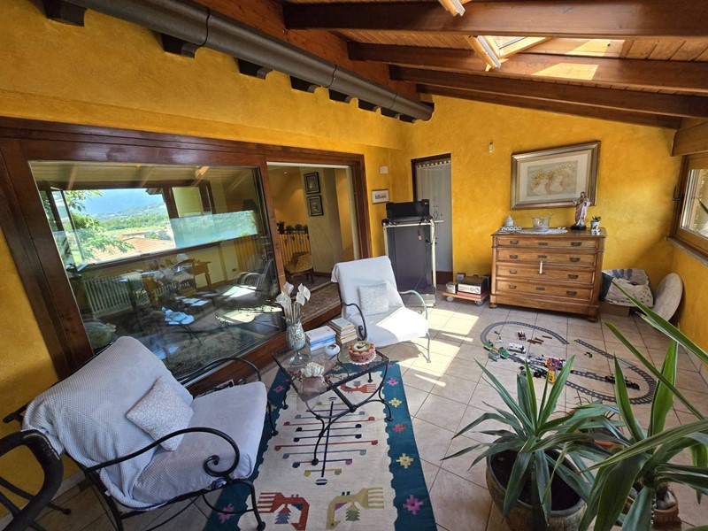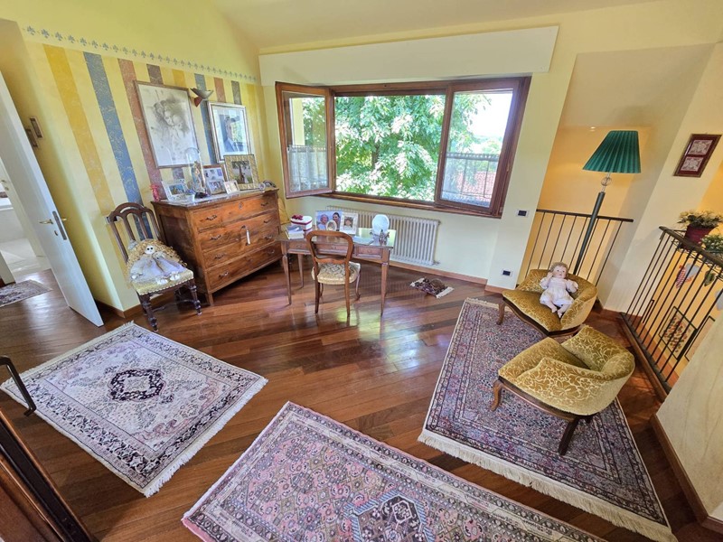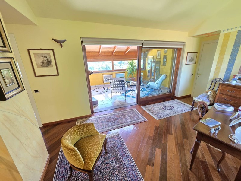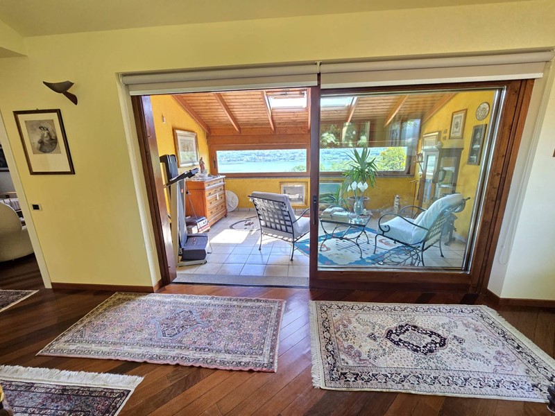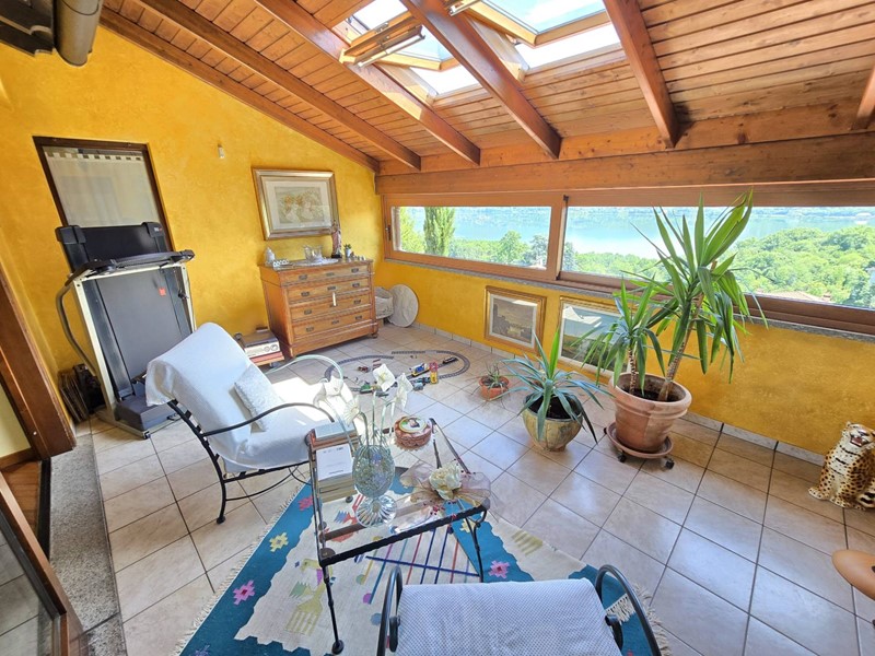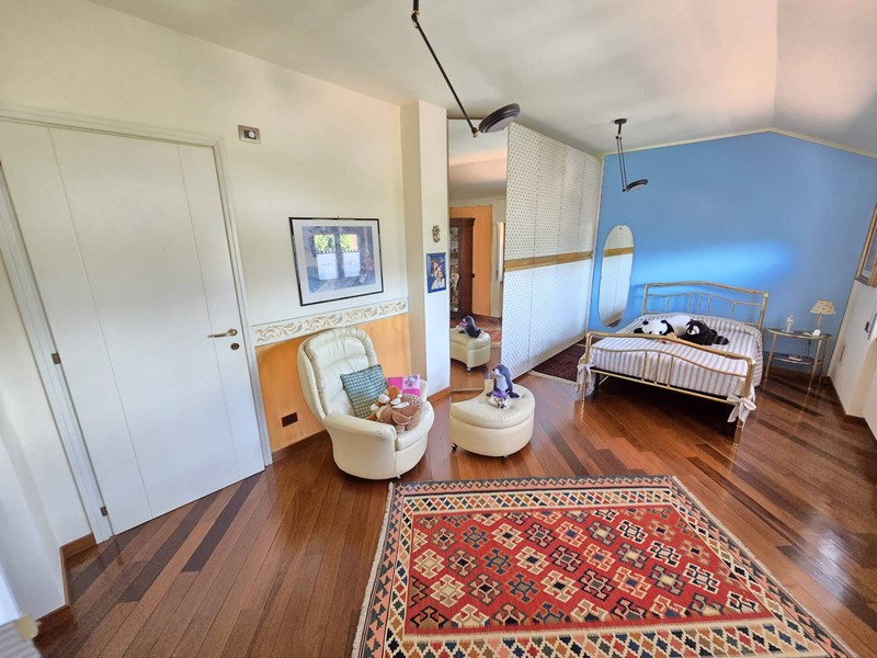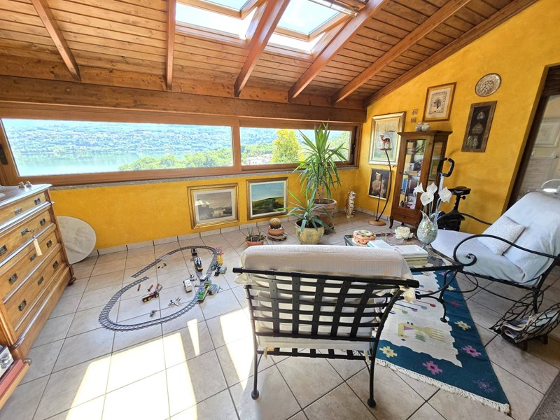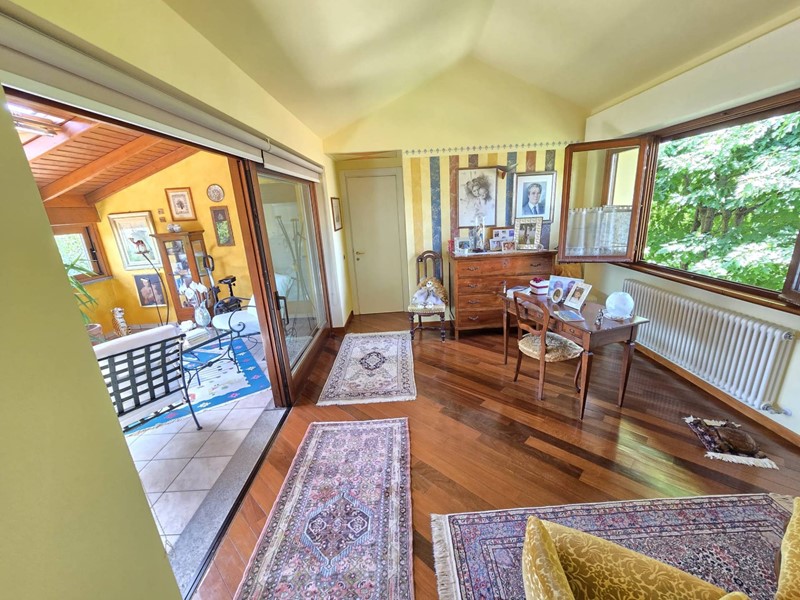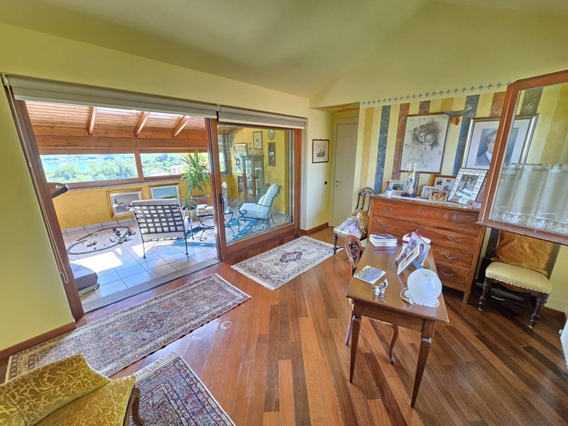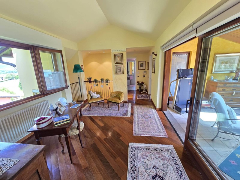 - al primo piano, accediamo direttamente ad un SALOTTO/STUDIO, perfetto anche come fantastica zona lettura o area gioco/palestra, servito da un TERRAZZINO VERANDATO con MAGNIFICA VISTA SUL LAGO, una CAMERA PADRONALE CON BAGNO EN SUITE E AMPIA CABINA ARMADIO entrambi finestrati, altre DUE CAMERE DA LETTO (di cui una singola servita da BALCONE con affaccio sulla piscina e una comoda matrimoniale), per concludere il piano un BAGNO finestrato. Anche questo piano è stato progettato per garantire ad ogni ambiente elevato comfort, tanta luminosità e la meravigliosa vista sul lago e sui promontori circostanti, caratteristica essenziale e senza eguali di questa proprietà;