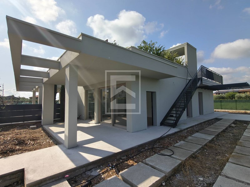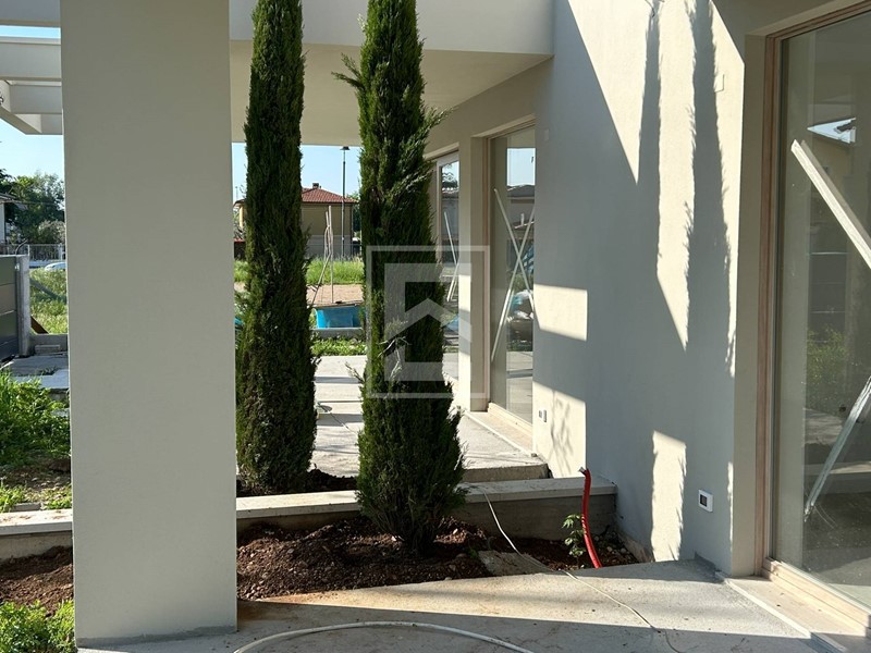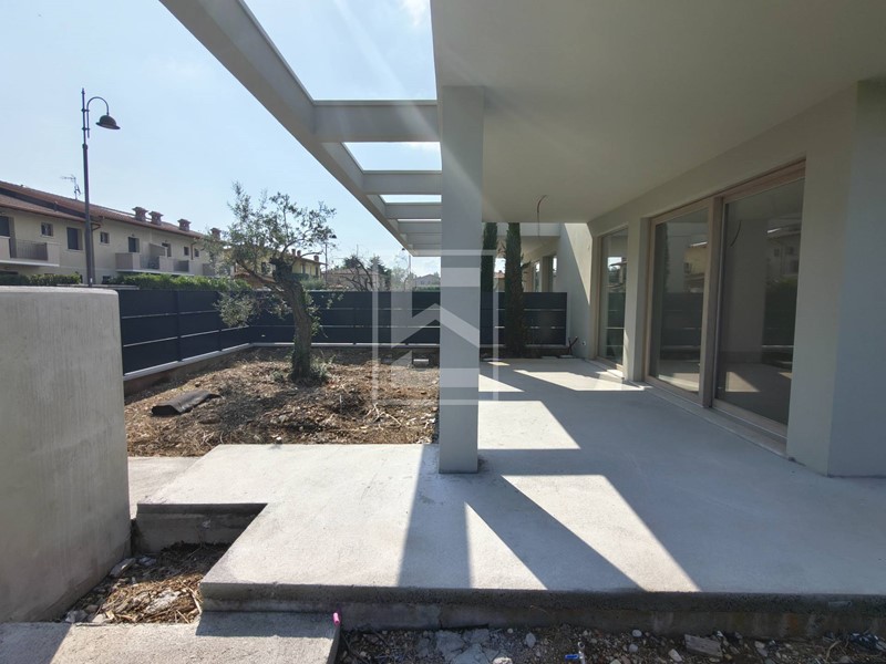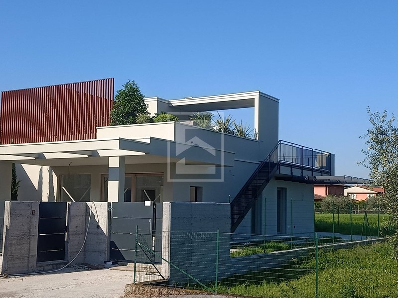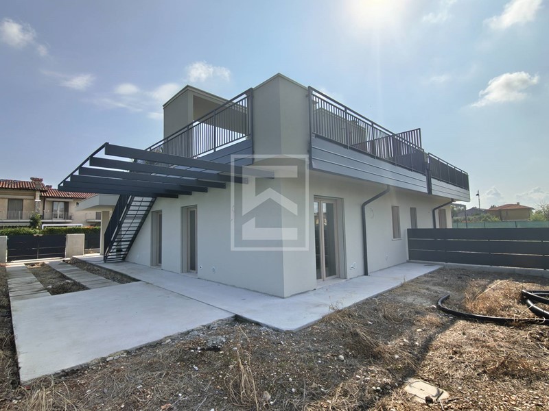 La parte abitativa si sviluppa su un unico livello, composto da giardino privato con posto auto protetto da pergolato, ampio porticato, soggiorno con cucina a vista, bagno, due camere singole, una matrimoniale con bagno privato e un vano ripostiglio.