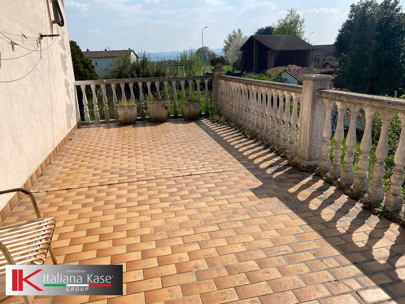 Appena fuori dal centro a due passi dai servizi casa indipendente, subito abitabile e con ampio giardino, cortile e tettoia aperta. Al piano terra troviamo l'ingresso a cui si affacciano: la cucina, una cameretta, il bagno e la cantina. Sempre al piano terreno troviamo anche un salotto con l'uscita in cortile. Al primo piano, servita da scala interna, troviamo due camere con balcone, il bagno e un ampio e panoramico terrazzo. La tettoia aperta e soppalcata può ospitare due auto.