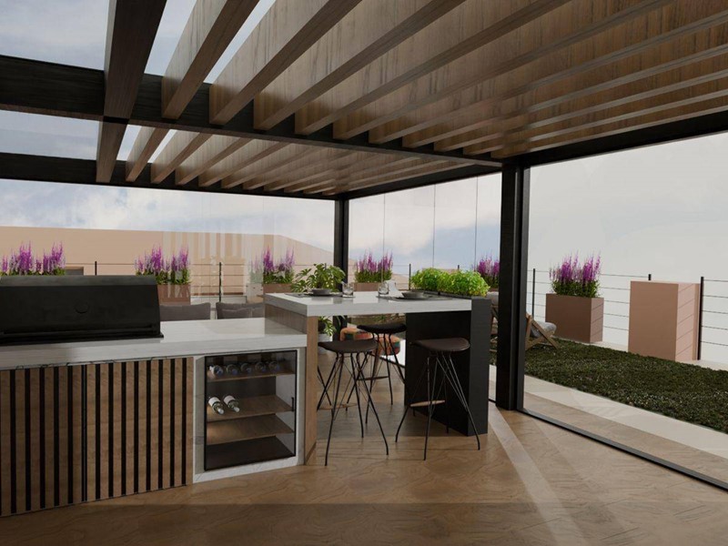 Proponiamo in vendita nel pieno centro di Teramo, via dei Tribunali, appartamento in via di completamento posto al secondo e ultimo piano senza ascensore così composto: ingresso su soggiorno, cucina abitabile, bagno, lavanderia, studio/camera, due camere da letto e suite matrimoniale con bagno privato e cabina armadio. Completano l'immobile terrazzo di 108 mq di cui verranno verandati 30mq e fondaco al piano terra.