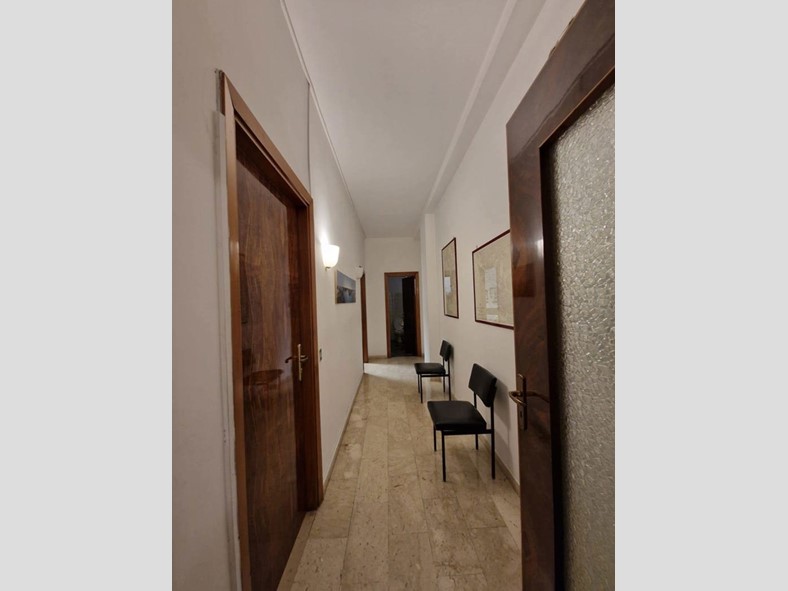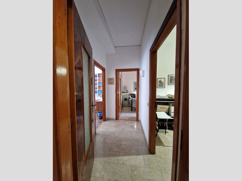Dall'ampio ingresso/sala d'attesa si accede a due luminose stanze che affacciano su via Indipendenza, offrendo luce naturale e una vista vivace, che si prestano idealmente a creare la zona giorno e la sala da pranzo. Nelle due stanze confinanti si potrebbero realizzare cucina con balcone e secondo bagno grazie alla presenza della colonna fognaria condominiale; dal disimpegno si accede alle ulteriori due stanze con bagno spazi adatti a camere da letto o studi separati, a seconda delle necessità.