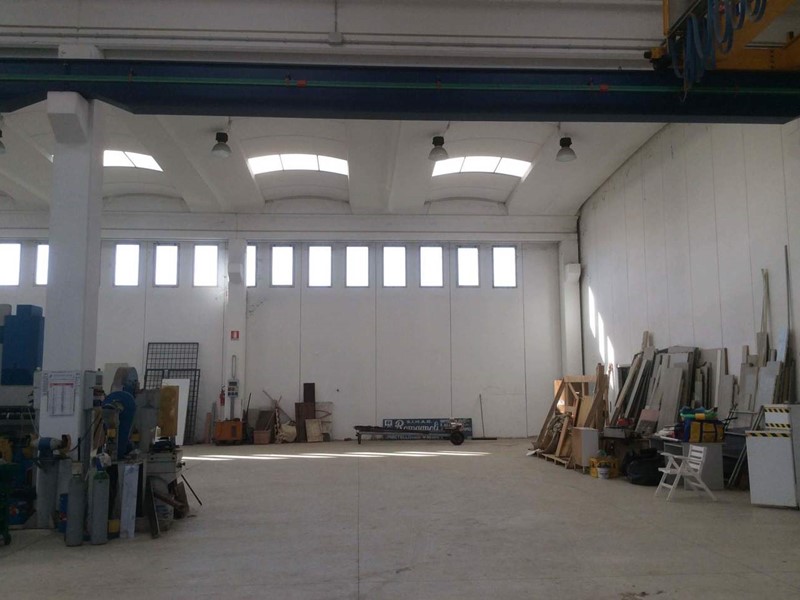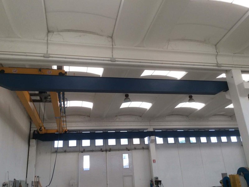 Capannone artigianale di circa 900 mq con altezza interna di 7 metri, dotato di carroponte Bonfanti con portata fino a 5000 kg (bitrave a cassone, paranco elettrico a fune Donati DRH2).