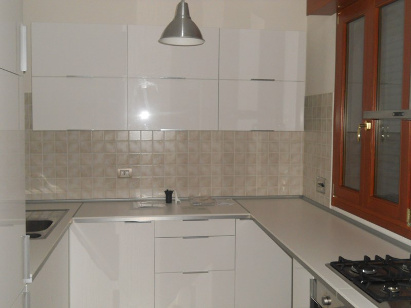 Appartamento in palazzina moderna composto da Coggiorno, Cucina arredata con angolo cottura (pensili, cappa, frigo, lavello, piano cottura, lavastoviglie, basi, cassettiera), Disimpegno, Bagno, Camera Matrimoniale con avvolgibile motorizzato, Camera Singola, due ampie Logge, una con Ripostiglio/Vano Tecnico caldaia. Al piano terra Cantina e Garage