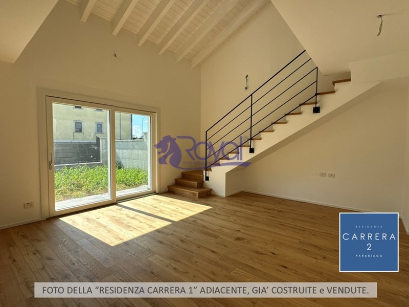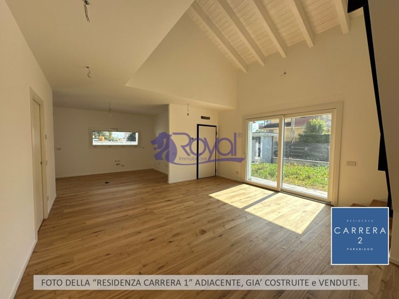 Posta nella zona residenziale più signorile e richiesta di Parabiago, villa di NUOVA COSTRUZIONE, ad alta tecnologia costruttiva classificata nella più ALTA CLASSE ENERGETICA A4! L'abitazione, con finiture interne da personalizzare, è di grande metratura, si suddivide su due piani, per un totale di 140 mq così composti: piano terra di 88 mq dove la favolosa zona living, cuore di ogni casa, è resa in questa soluzione ancor più importante e particolare per la doppia altezza che le dona eleganza e modernità, oltre a trasmettere senso di spazio e luce; l'abitazione prosegue con una grande cucina abitabile, che è possibile mantenere a vista per una continuità della zona giorno mantenendo lo stile moderno oppure dividerla in modo più tradizionale dandole più privacy, scelta lasciata liberamente all'acquirente; al piano vi è anche una spaziosa camera matrimoniale, una zona adibita a lavanderia ed il primo bagno. Il piano primo di 52 mq, mansardato travi in legno a vista è ABITABILE, molto particolare la scala a vista che conduce al soppalco che precede la zona notte, dove troviamo una cameretta con balcone, il secondo bagno e la seconda camera matrimoniale di generosa metratura dotata di terrazzo! Il giardino di 190 mq, oltre ad un porticato di altri 13 mq, è distribuito sui tre lati della villa, è da sottolineare l'assoluta riservatezza della zona esterna retrostante della casa ideale da sfruttare per momenti di convivialità in famiglia o con amici in totale privacy. La costruzione progettata per assicurare un altro risparmio energetico, grazie all'impiego di materiali innovativi e di impianti tecnologici di ultima generazione, tra cui serramenti ad alto isolamento termico ed acustico, impianto di riscaldamento a pavimento mediante pompa di calore 100% elettrico, impianto fotovoltaico privato di ben di 5 kW/h, impianto elettrico predisposto per smart domotica, oltre predisposizione di climatizzatore e allarme. Il box doppio in larghezza con basculante sezionale motorizzata. La villa è da personalizzare nella scelte di finiture quali pavimenti, rivestimenti e porte interne. * LE FOTO DELLA VILLA ULTIMATA FANNO RIFERIMENTO ALLA RESIDENZA CARERRA 1 (POSTE A FIANCO) DI STESSA TIPOLOGIA E METRATURA, GIA' COSTRUITE e VENDUTE. SONO STATE PUBBLICATE a TITOLO di ESEMPIO.\nMappa - Maggiori Dettagli: Porta blindata, Cucina Abitabile