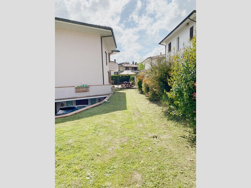 Al piano terra l’ingresso apre su un luminoso soggiorno, un salone con zona pranzo, una cucina abitabile con accesso diretto al giardino, oltre a bagno di servizio e ripostiglio.