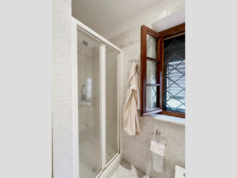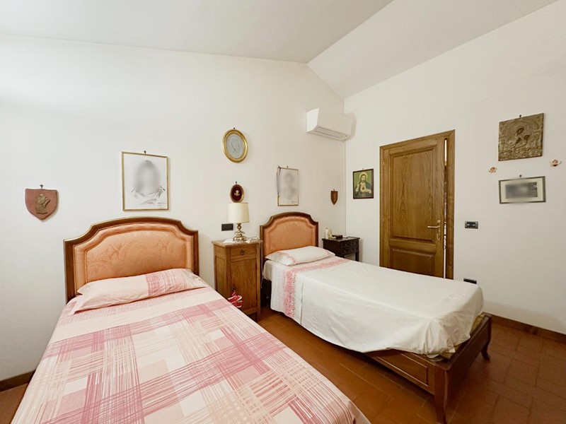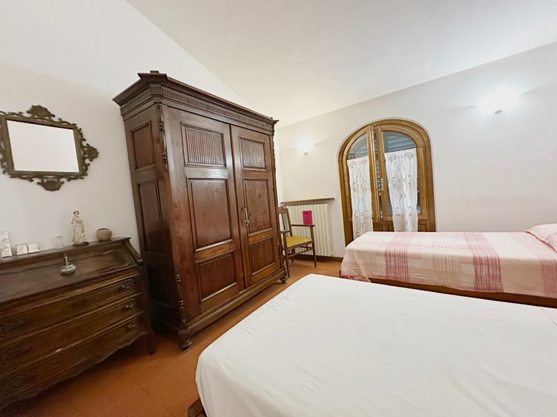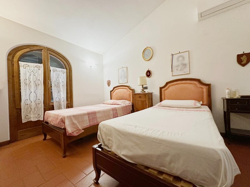 Il primo piano ospita due camere matrimoniali e un secondo bagno. Gli interni sono impreziositi da pavimenti in cotto, dettagli in pietra a vista e infissi in legno con zanzariere e barre anti-intrusione. È presente inoltre l’aria condizionata in alcune stanze.