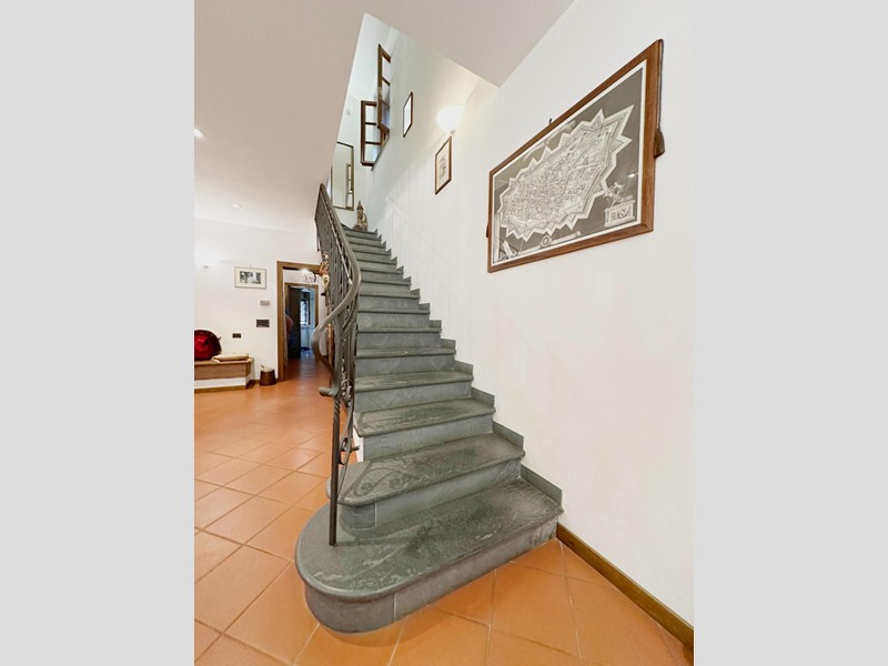 L’abitazione, di circa 170 mq, si sviluppa su due livelli collegati da una scala in pietra con ringhiera in ferro battuto. Al piano terra troviamo l’ingresso da portico/loggiato con vista sul giardino, un ampio soggiorno con camino, una cucina abitabile anch’essa dotata di camino, una camera matrimoniale, un bagno di servizio, un locale tecnico e un vano attualmente adibito a ripostiglio ma facilmente trasformabile in ulteriore camera.