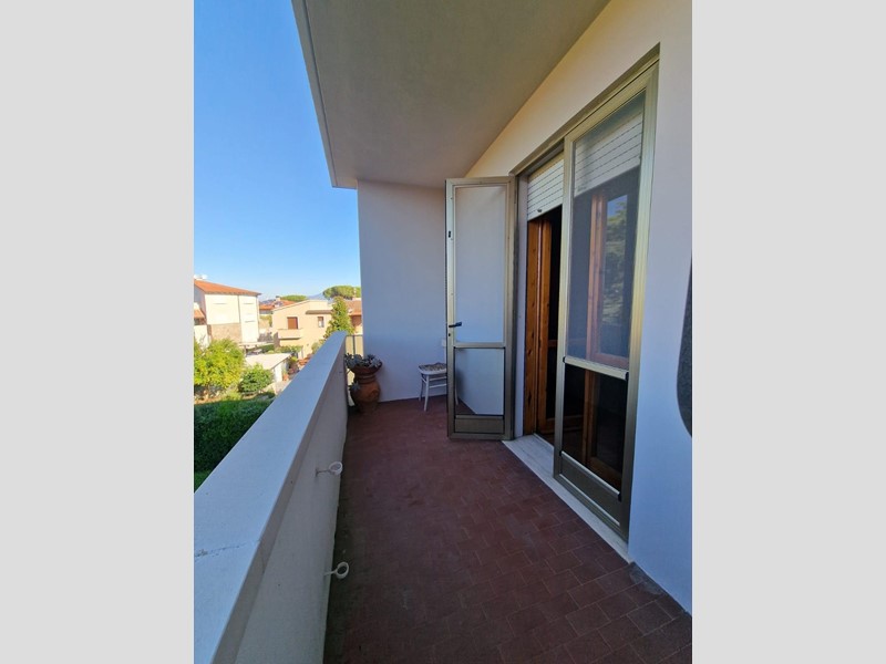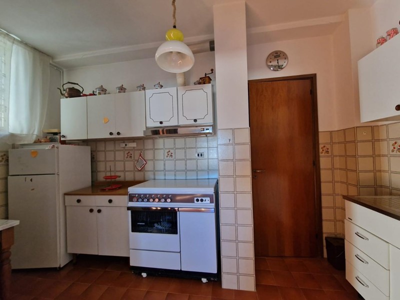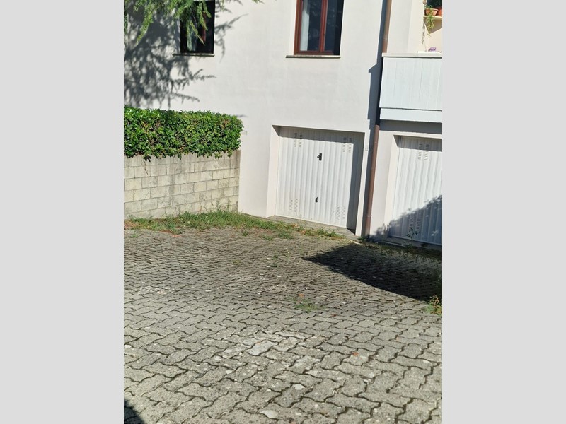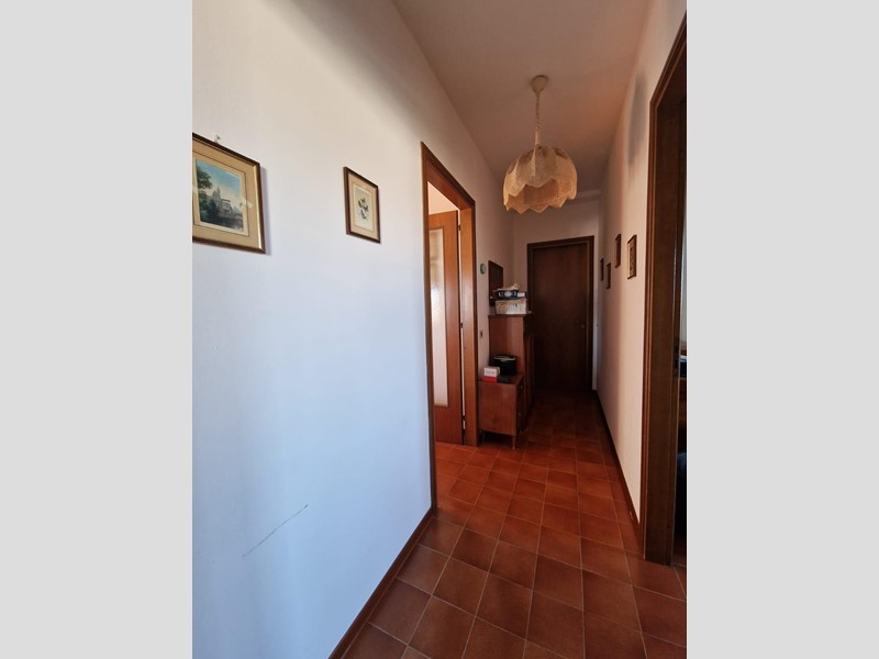 L'accesso all'appartamento avviene tramite portone e scale condominiali. All'ingresso troviamo: ampio soggiorno con terrazzo, cucinotto semiabitabile con dispensa, disimpegno notte, bagno e due camere matrimoniali di cui una con terrazza. A piano terra, oltre al comodo garage e alla cantina esclusivi troviamo il parco condominiale, curato e attrezzato anche per la stesa dei panni, con parti destinate al verde e altre al parcheggio comune.
