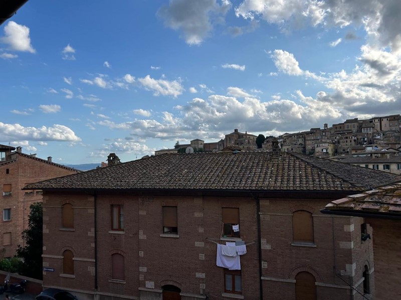 Siena Terzo di S Martino. Prossimo a Piazza del Campo appartamento in buone condizioni abitative di mq. 93 ca posto al piano secondo ed ultimo, composto da grande soggiorno panoramico sulla città, cucina abitabile, due camere, studio e bagno. Tratt.